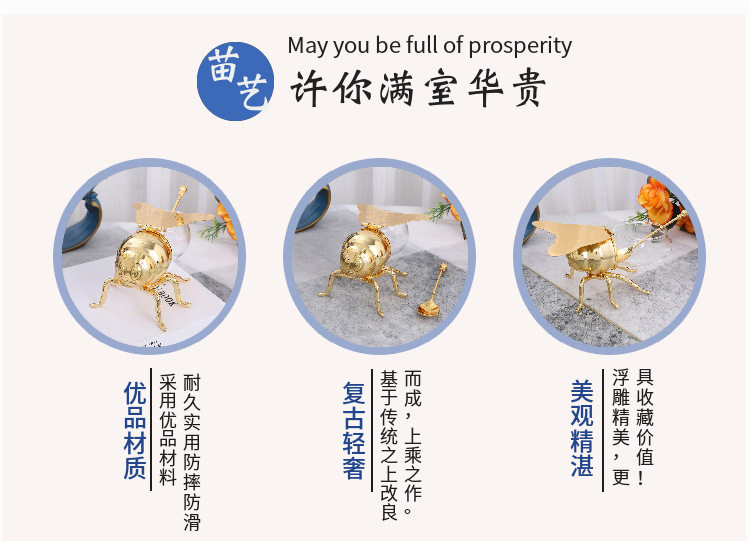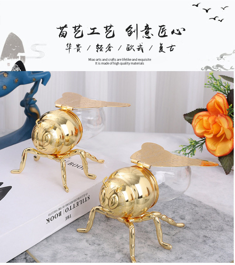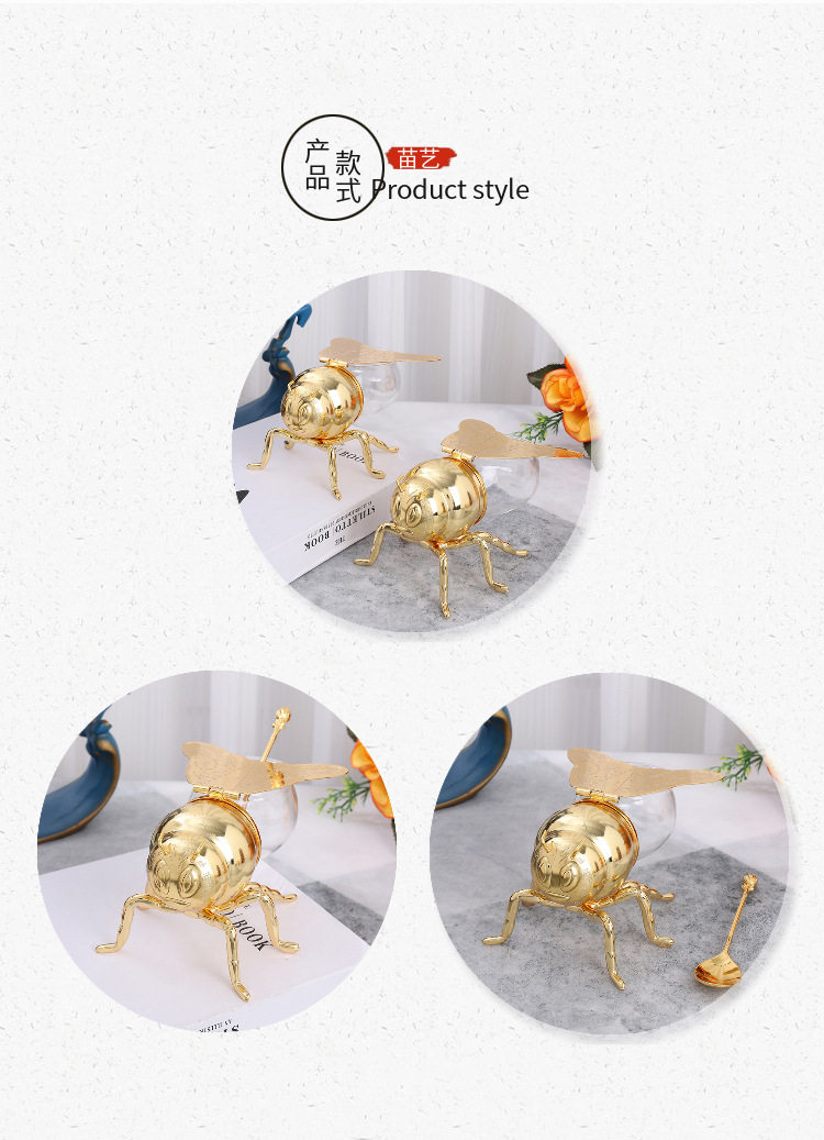 Golden Large Bee Sugar Cup Household European-Style High-End Kitchen Seasoning Box Storage Jar with Spoon Accessible Luxury Home Furnishings