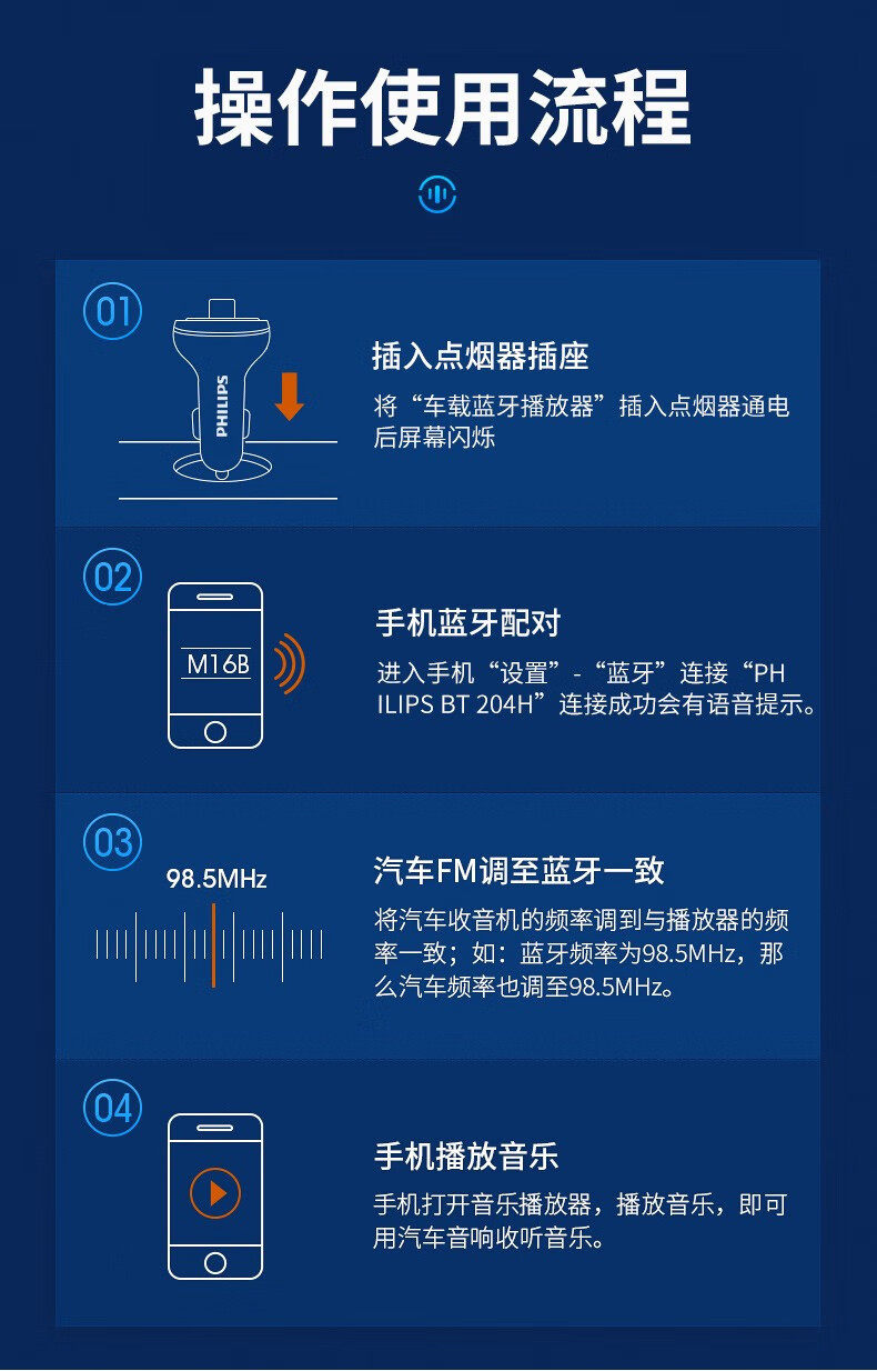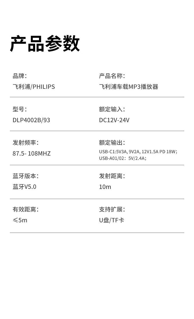 Philips car Bluetooth receiver DLP4002 lossless mp3 car music playback answering phone plug-in USB flash disk
