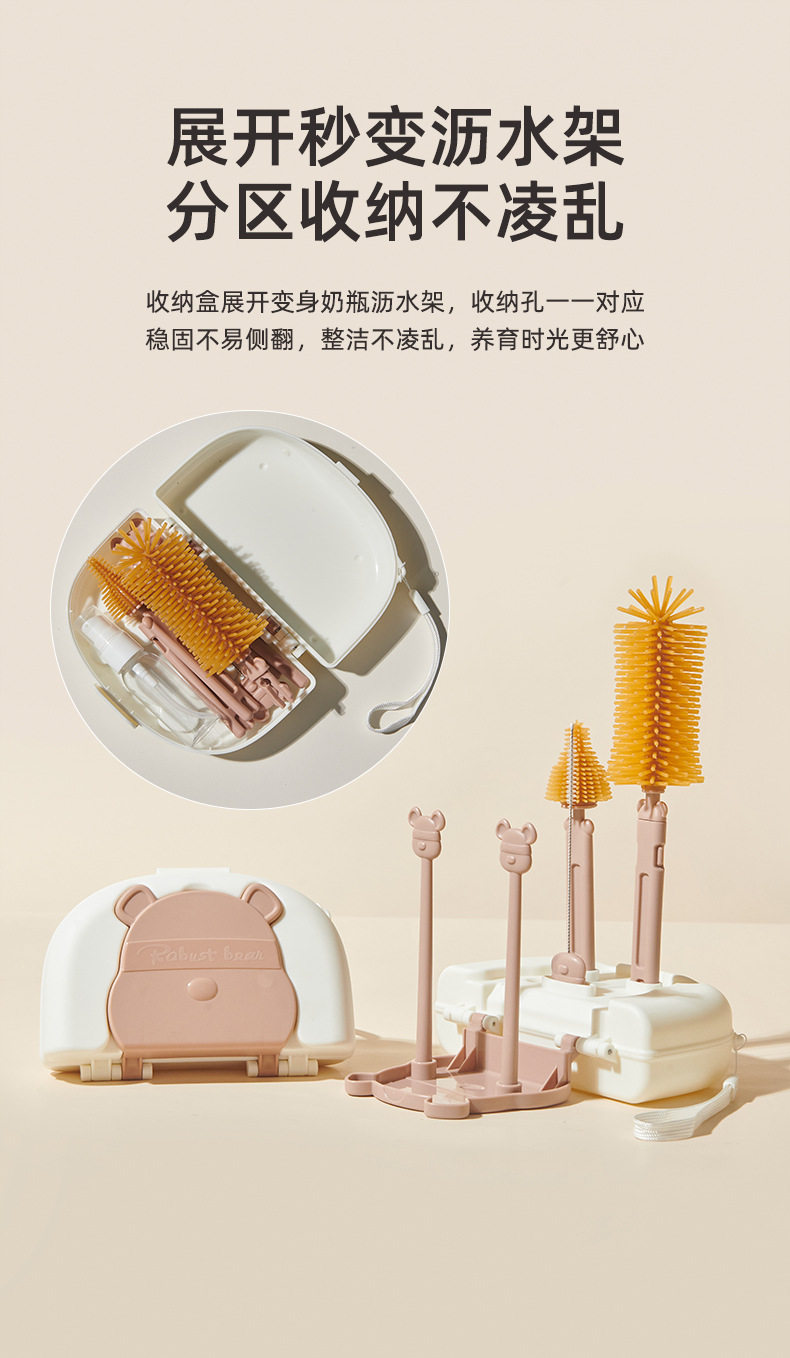Baby Cleaning Brush suit Children's Suction Brush Cup Brush Draining Rack with Storage Box Baby Silicone Bottle Brush