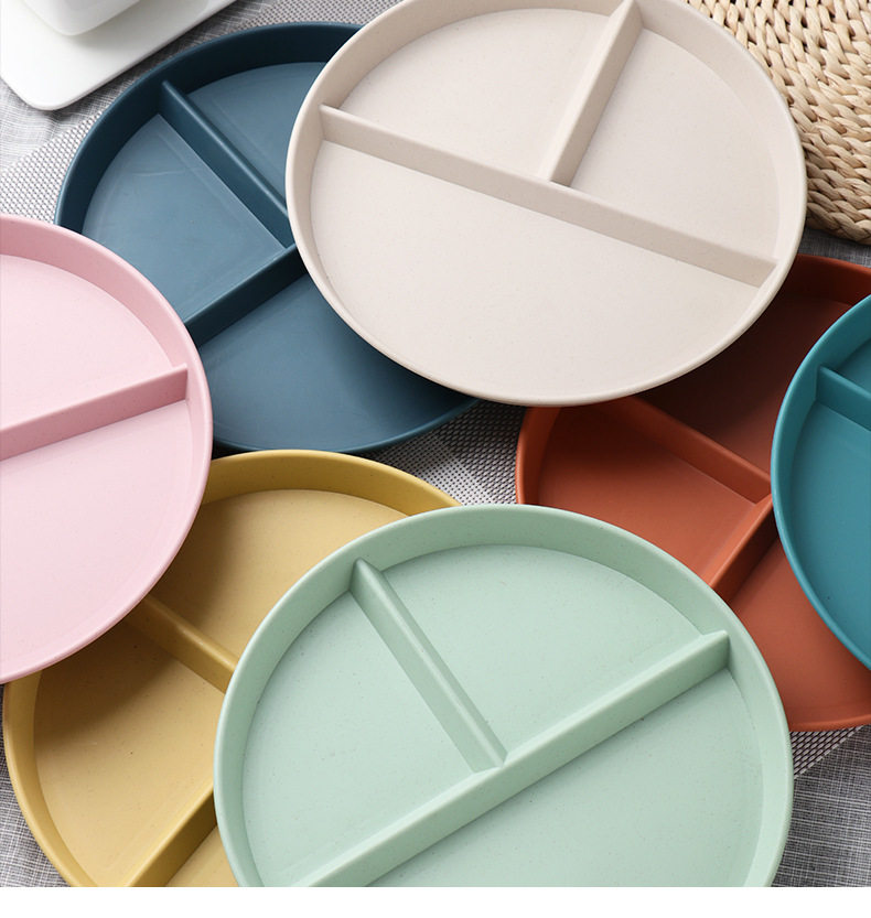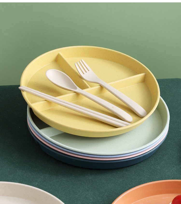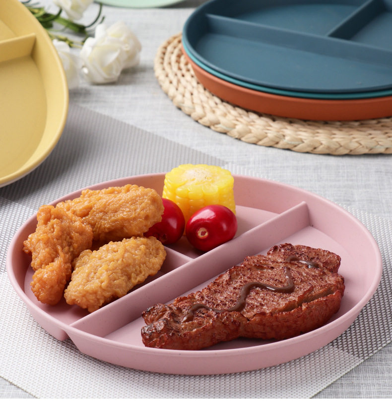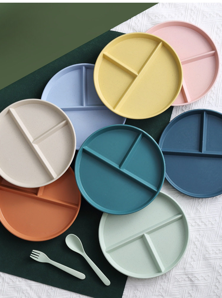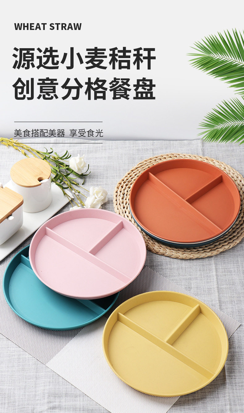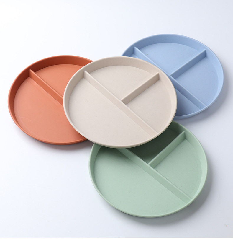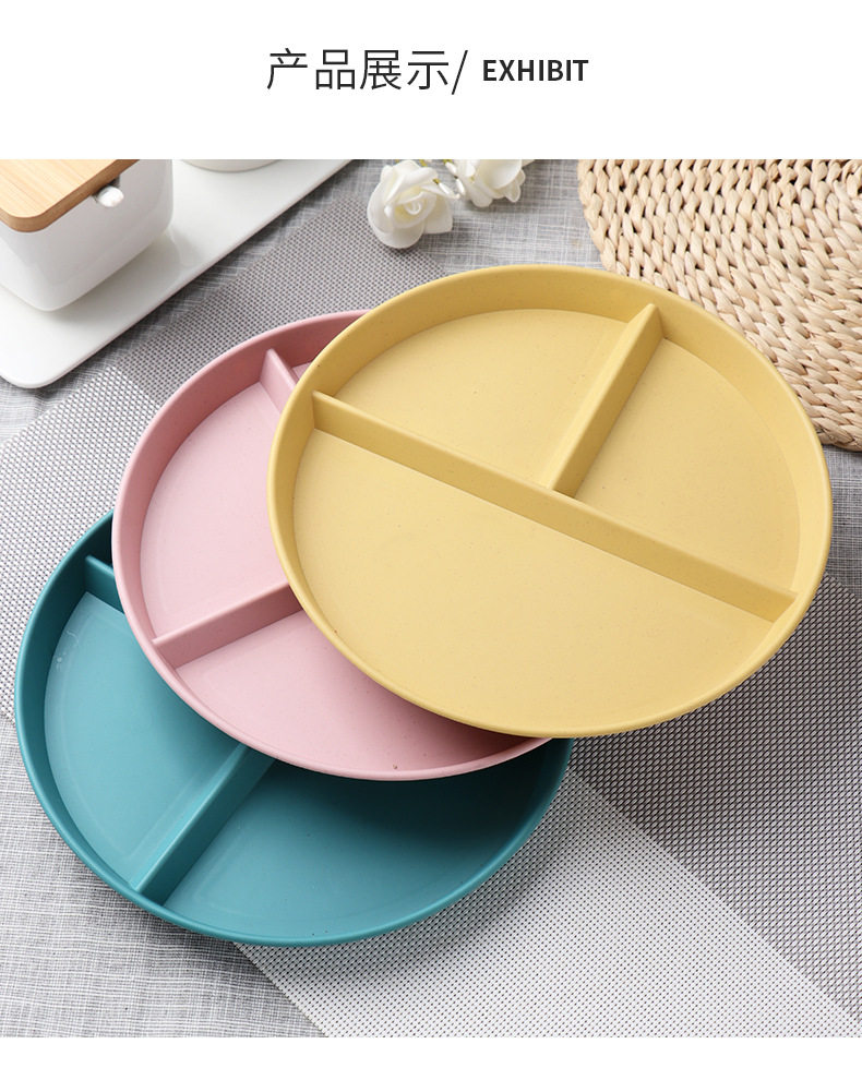 Wheat straw grid plate suit quantitative three grid plate round high color value fat reduction plate plastic plate wholesale