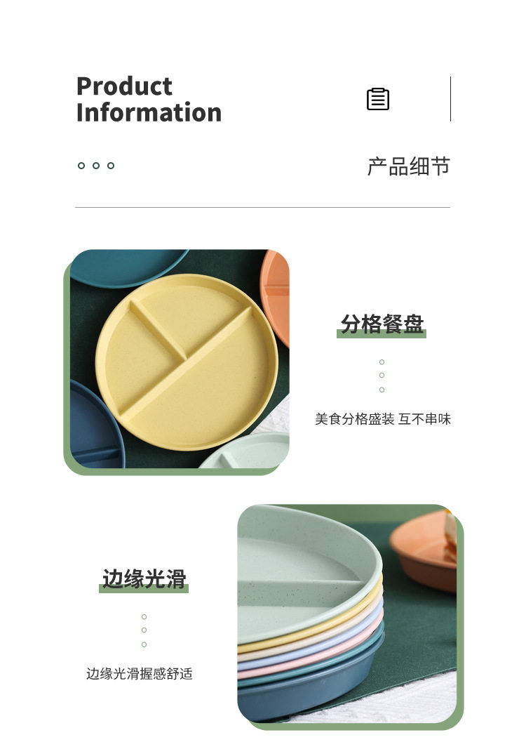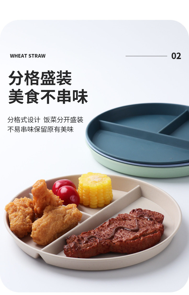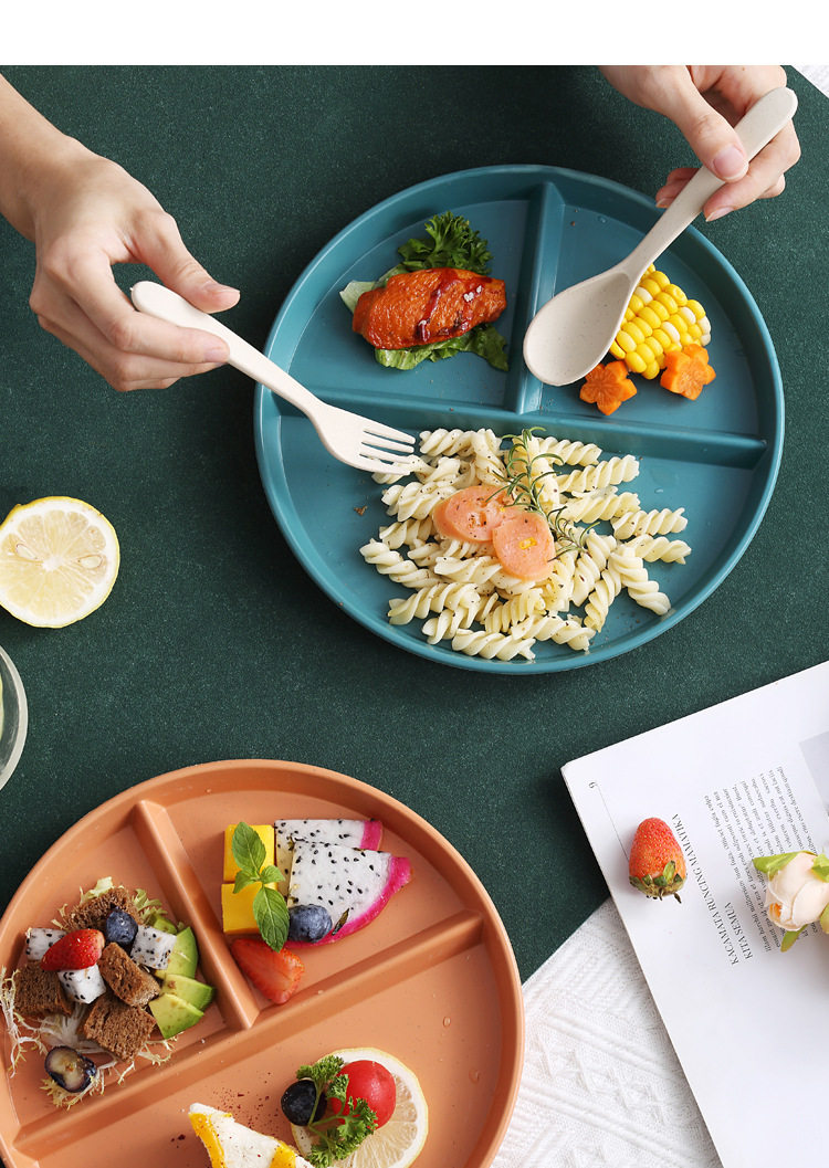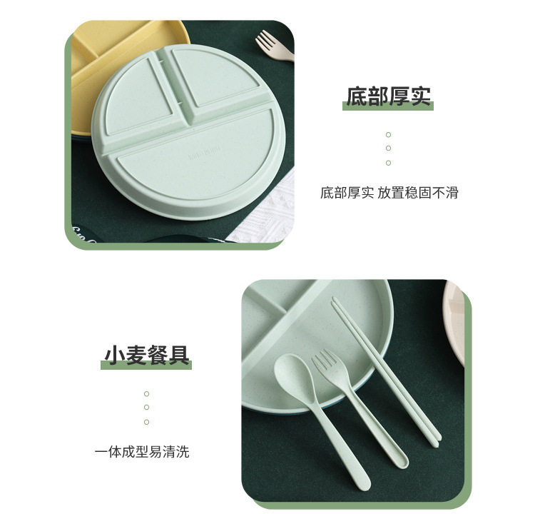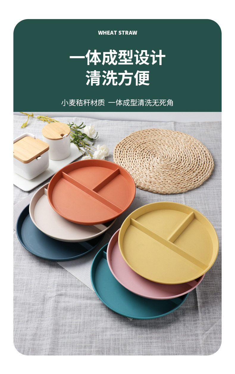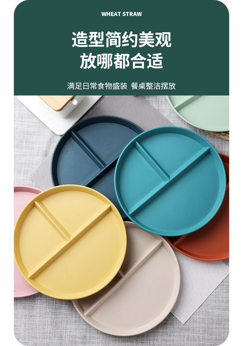Wheat straw grid plate suit quantitative three grid plate round high color value fat reduction plate plastic plate wholesale