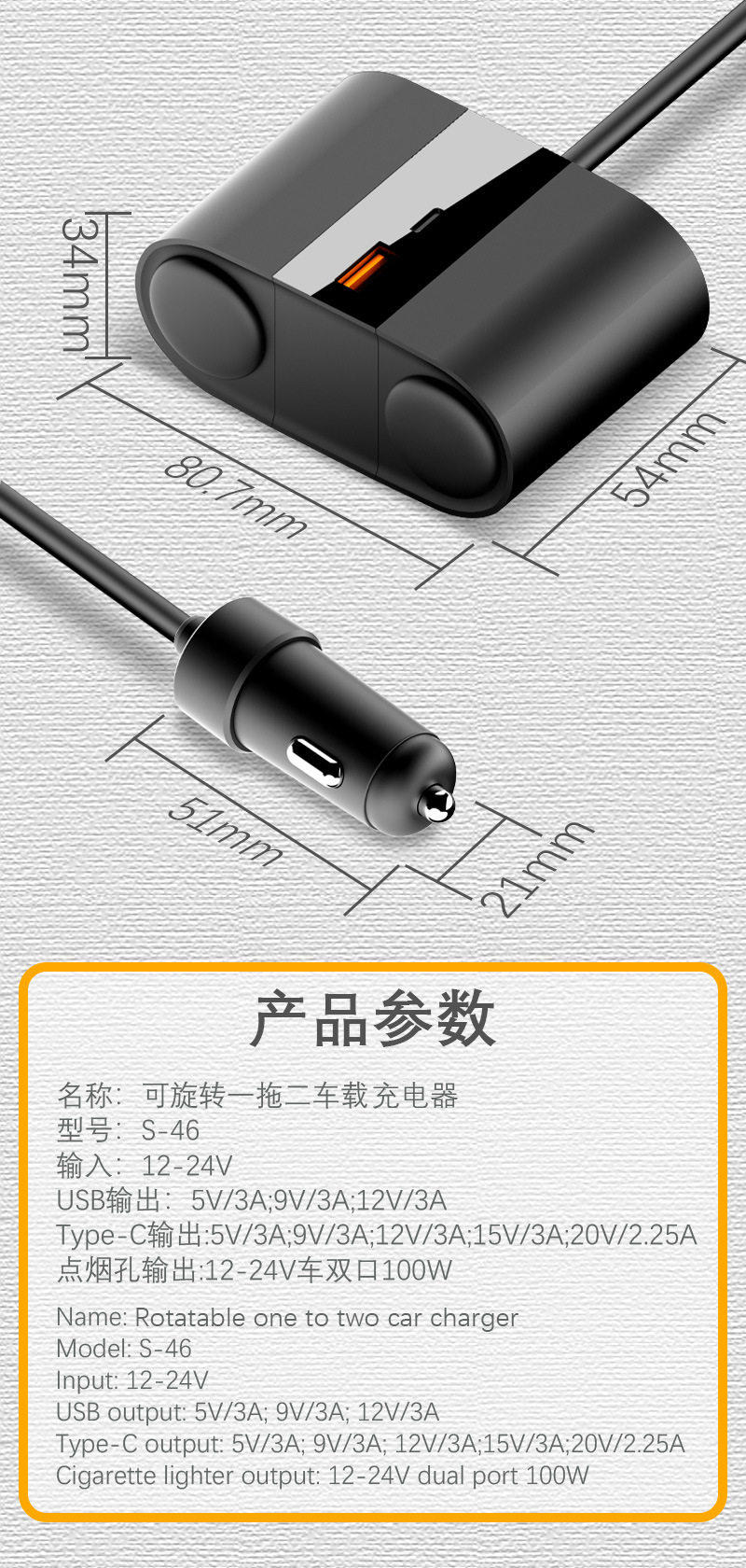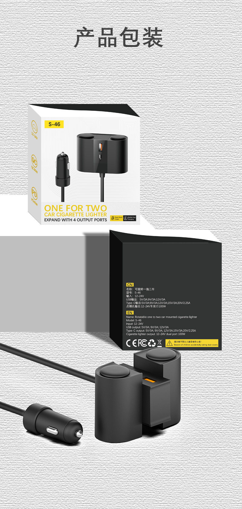 | Type | Cigarette lighter,One-to-three cigarette lighter |