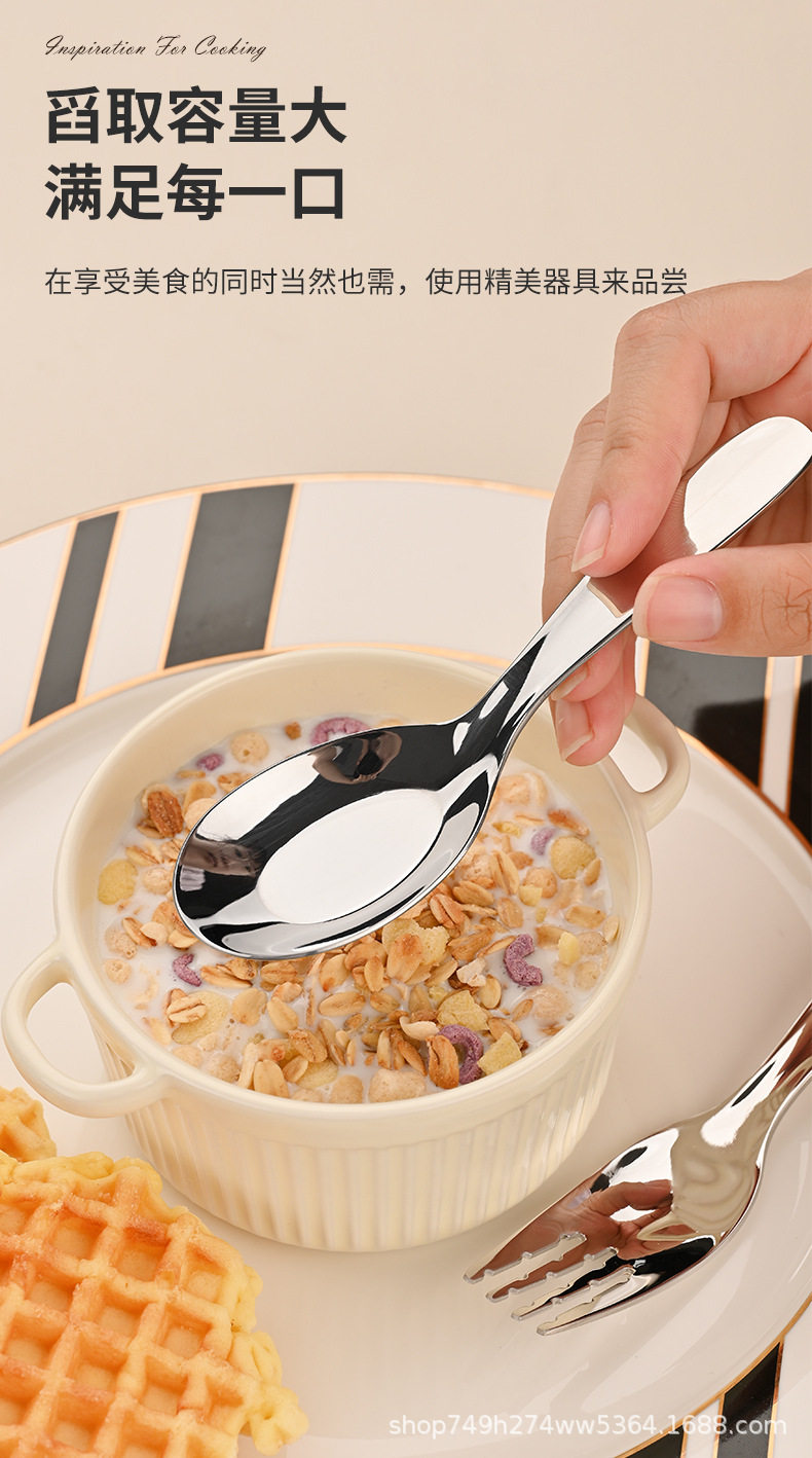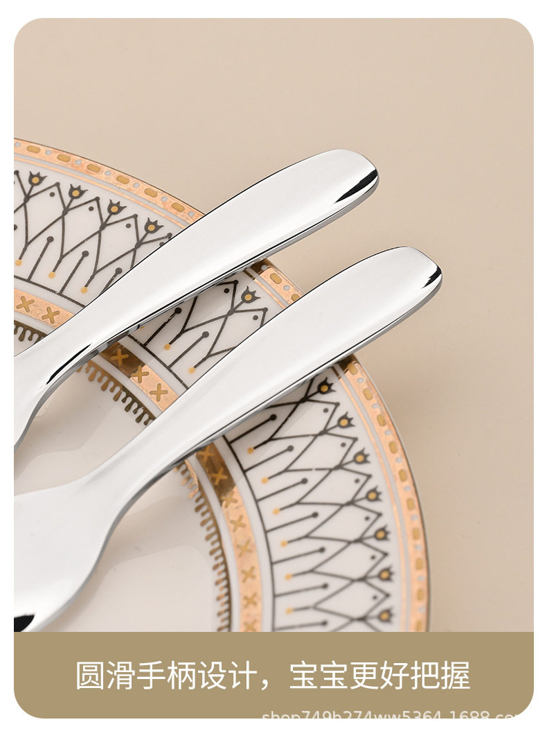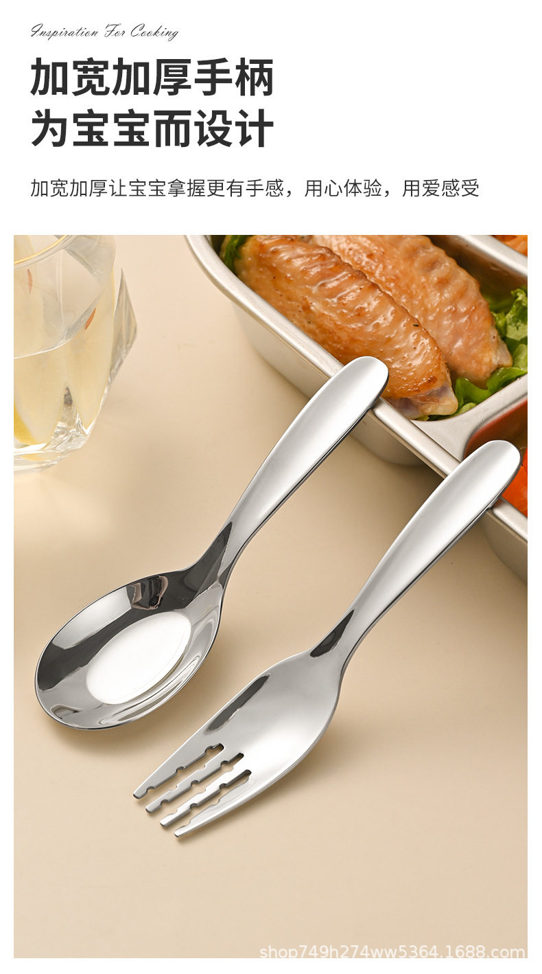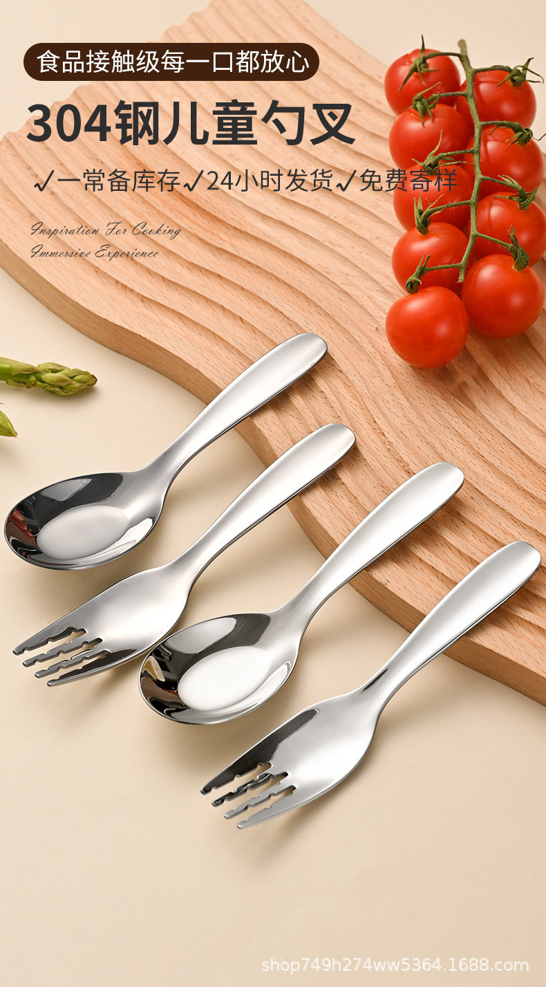 Wholesale 304 stainless steel Children's tableware suit Jieyang flat spoon Fork Short baby eating tableware