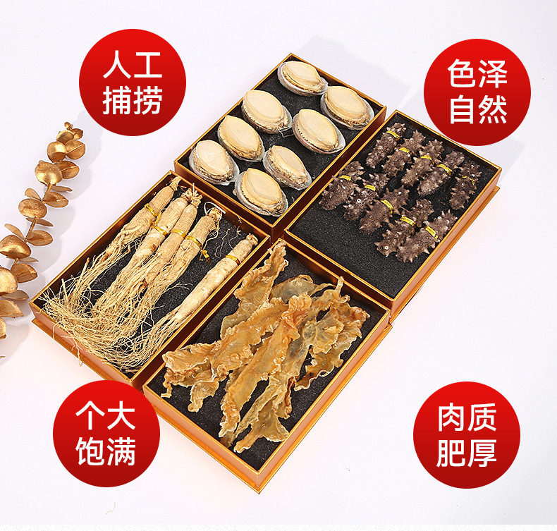 Abalone Sea Cucumber Gift Box Sea Cucumber Gift Box Sea Cucumber Abalone Fish Gum Ginseng Double Spelling Three Spelling Aquatic Dried Goods Annual Gift