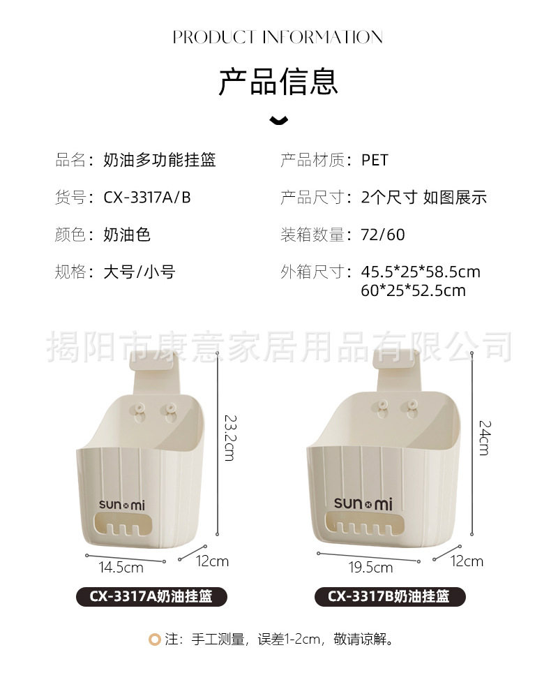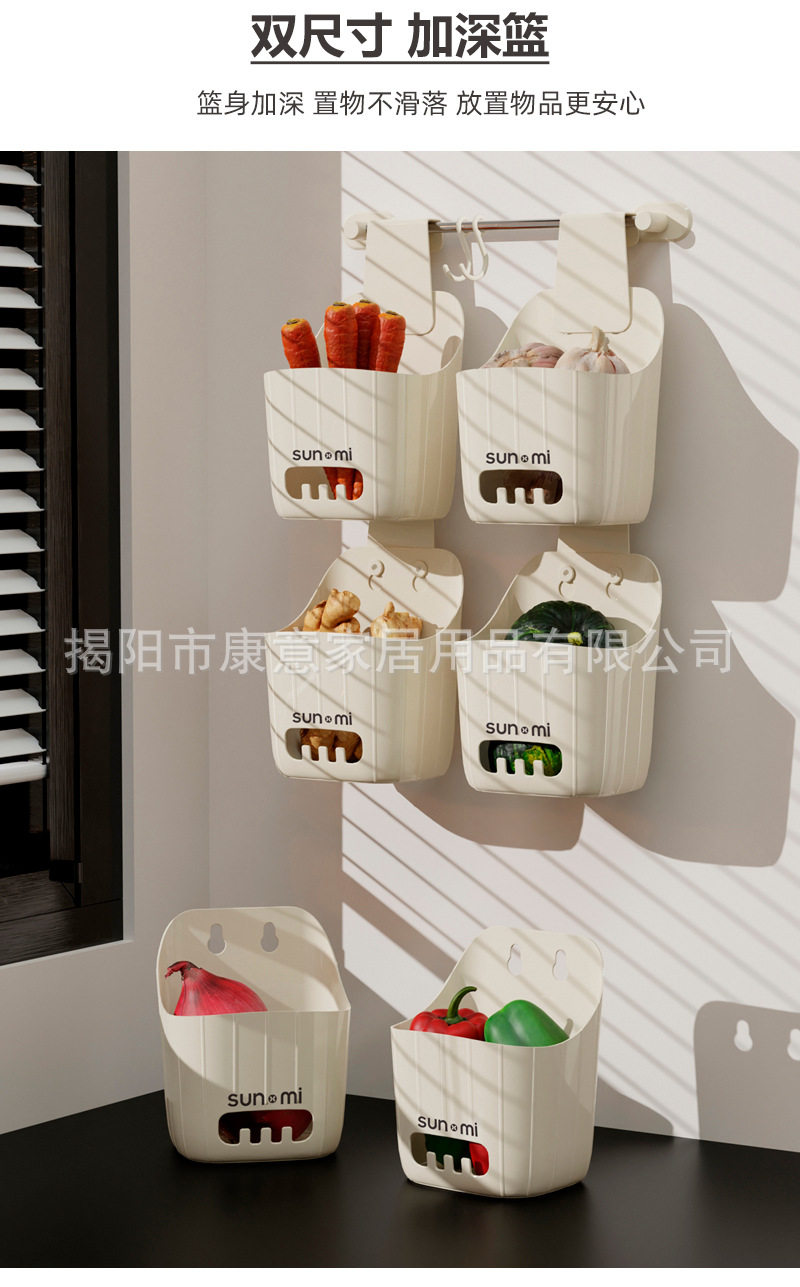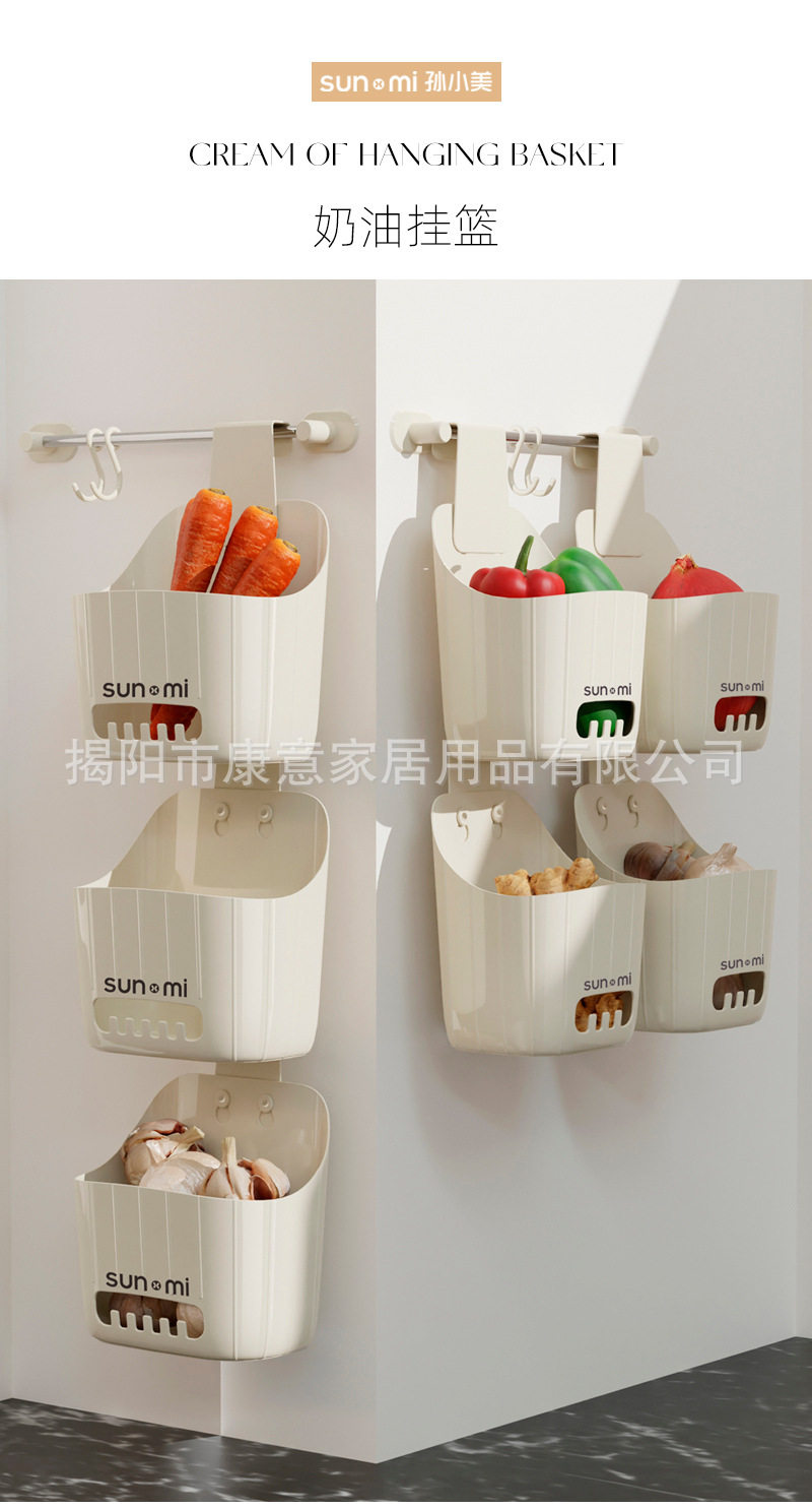 Cream style kitchen ginger and garlic hanging basket bathroom bedroom seamless punch-free storage box bathroom wall-mounted storage basket