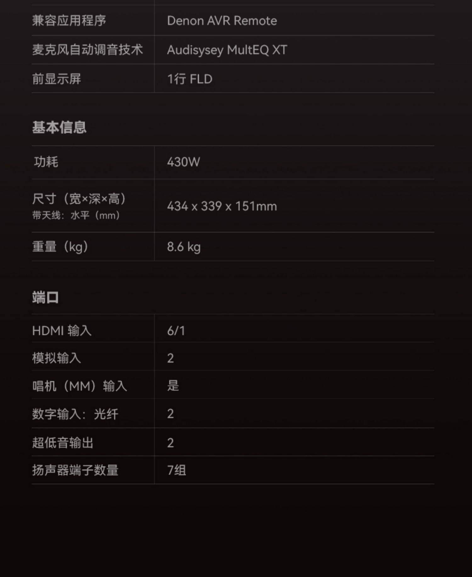 DENON Tianlong AVR-X1800H home theater AV amplifier 7.2 Channel panoramic sound 8K HD Bluetooth network
