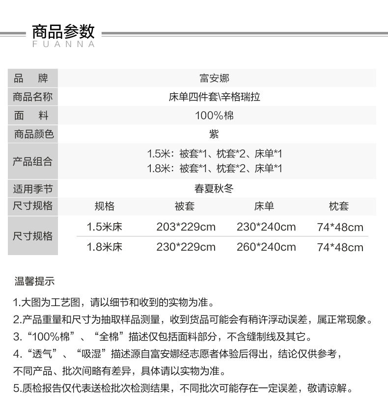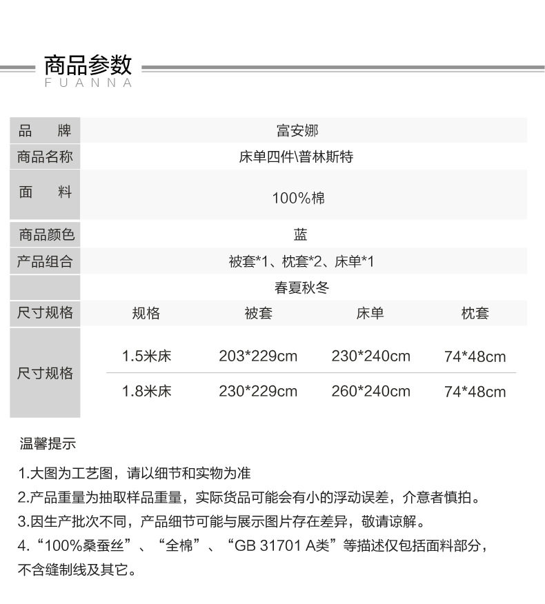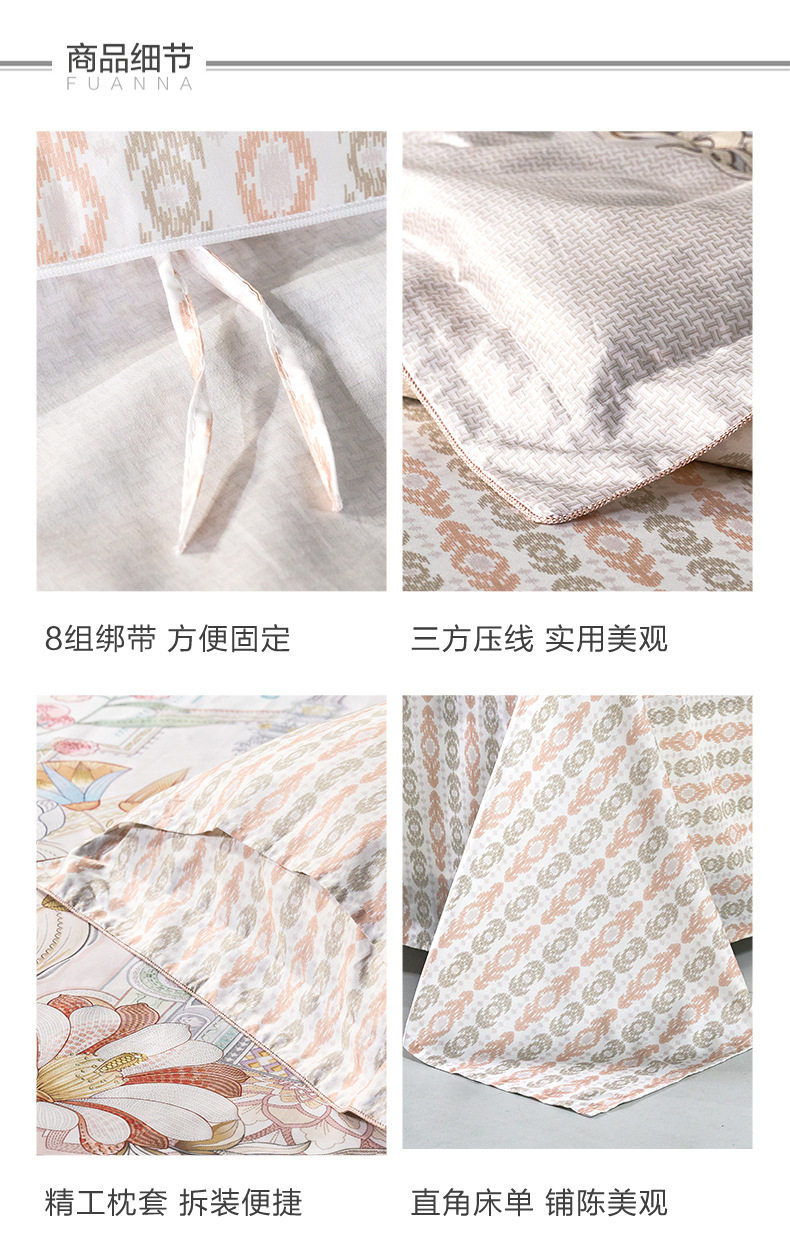 Fuanna home textile 100 long-staple cotton class A pure cotton four-piece cotton quilt cover bed sheet light luxury bedding