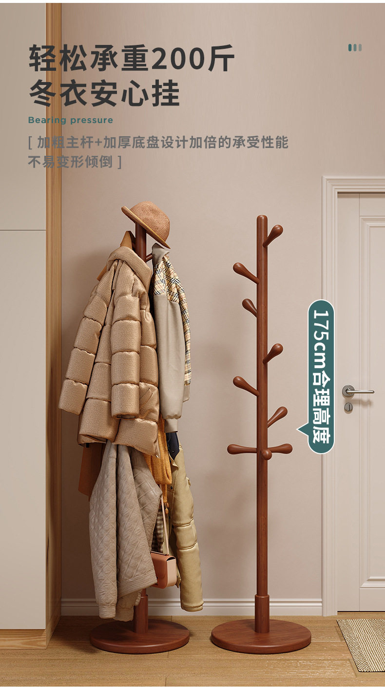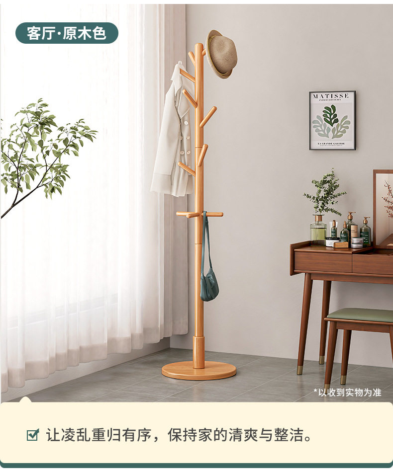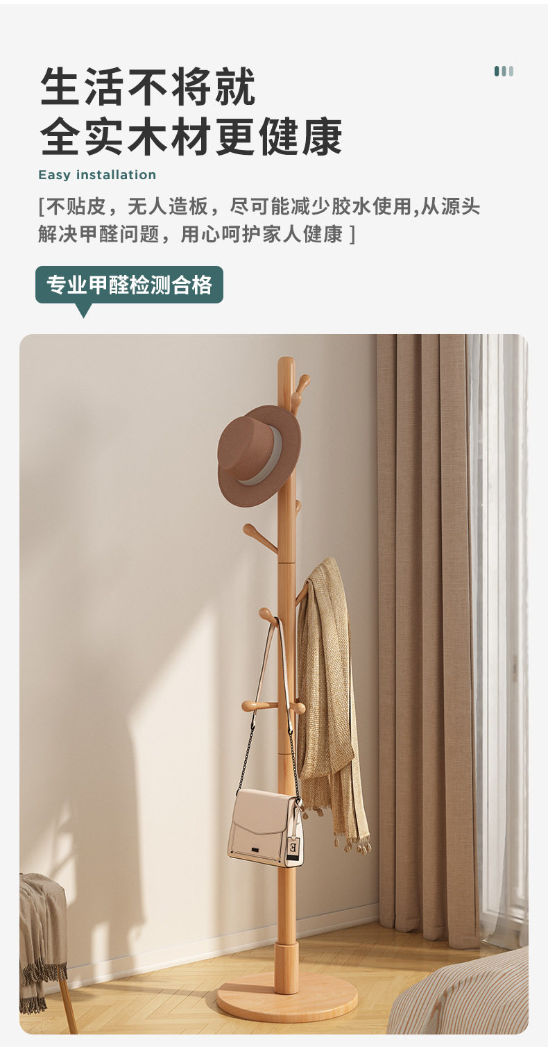 Solid wood hanger floor bedroom hanger household hanger Rod living room vertical non-occupied simple Beech coat rack