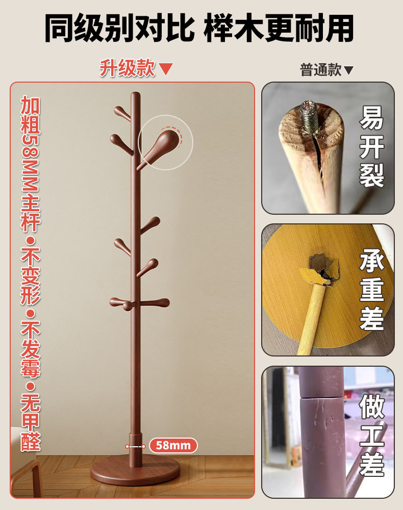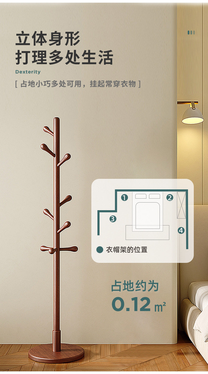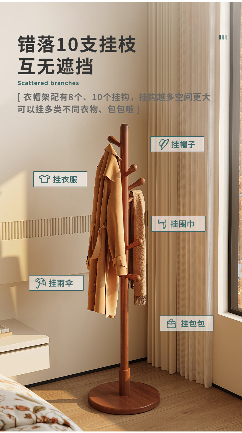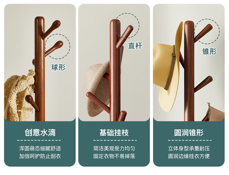 Solid wood hanger floor bedroom hanger household hanger Rod living room vertical non-occupied simple Beech coat rack