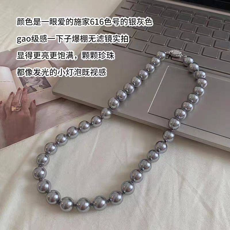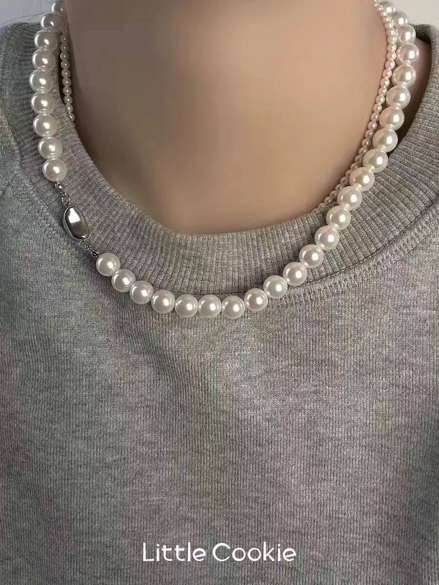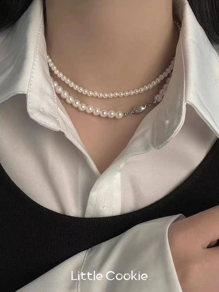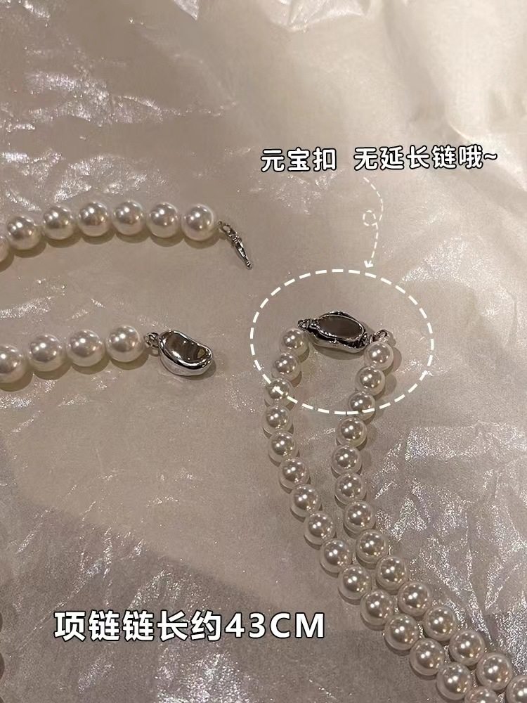 Korean Generation Fever's Same Style Retro High-End French Shijia Pearl Ingot Buckle Necklace Accessible Luxury Niche Clavicle Chain