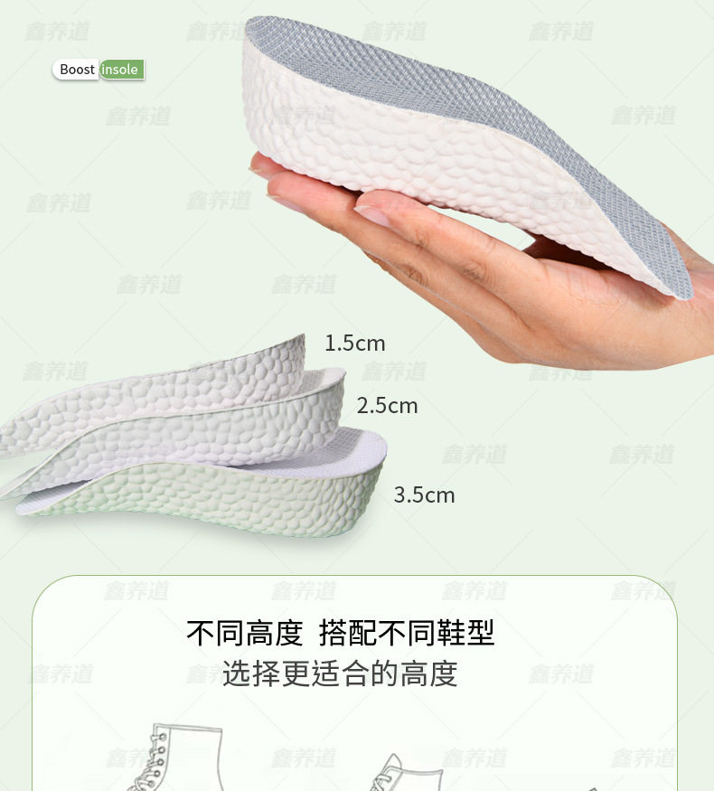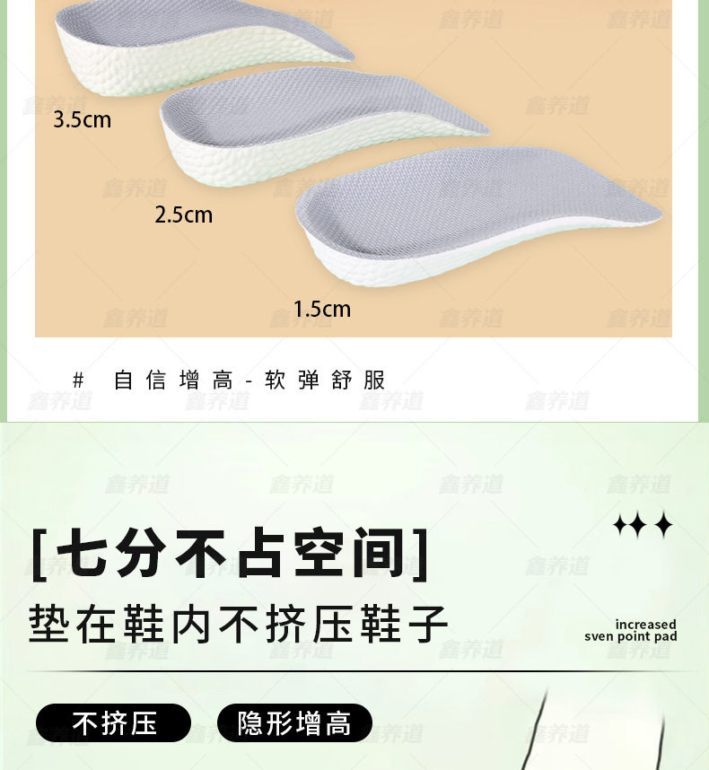 Boost invisible men's and women's insole height increasing artifact seven-point height increasing insole arch support soft elastic insole