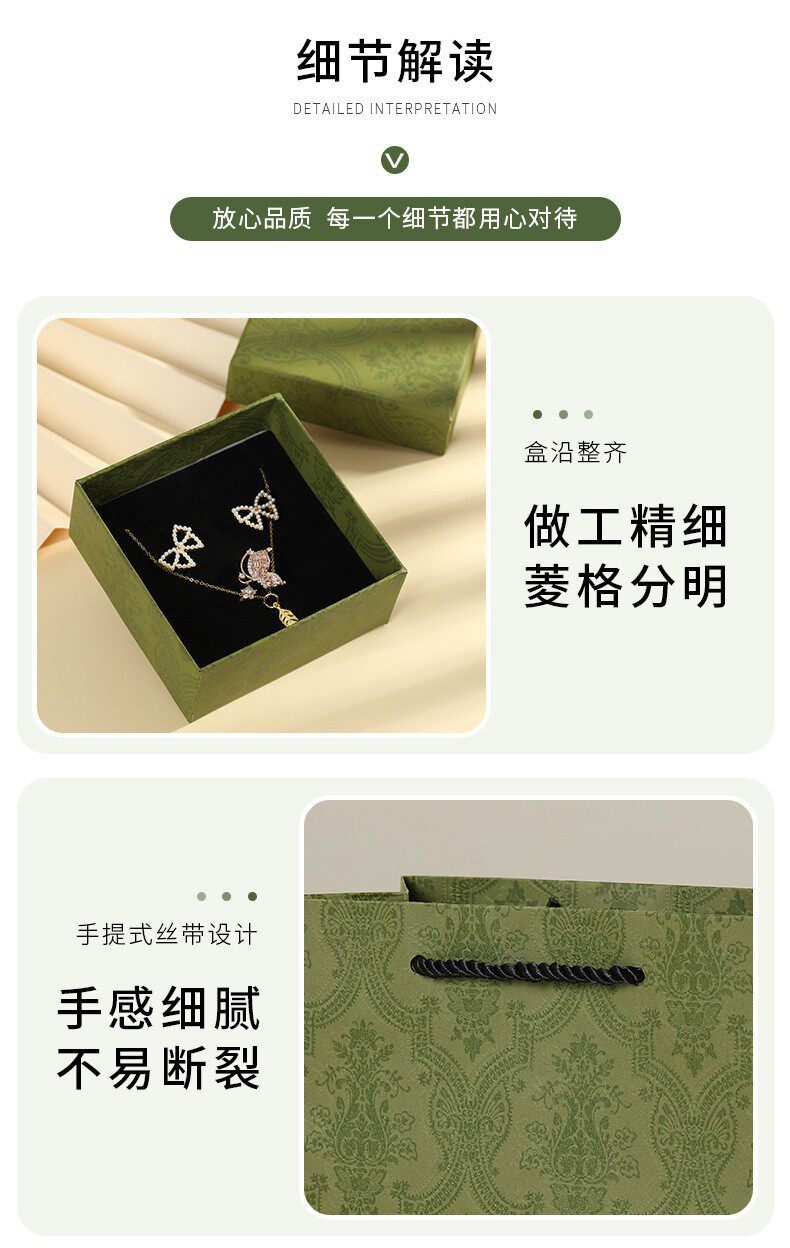 Ready Stock Jewelry Packaging Box Bow Army Green Gift Box Simple Fresh Earrings Bracelet Necklace Jewelry Box