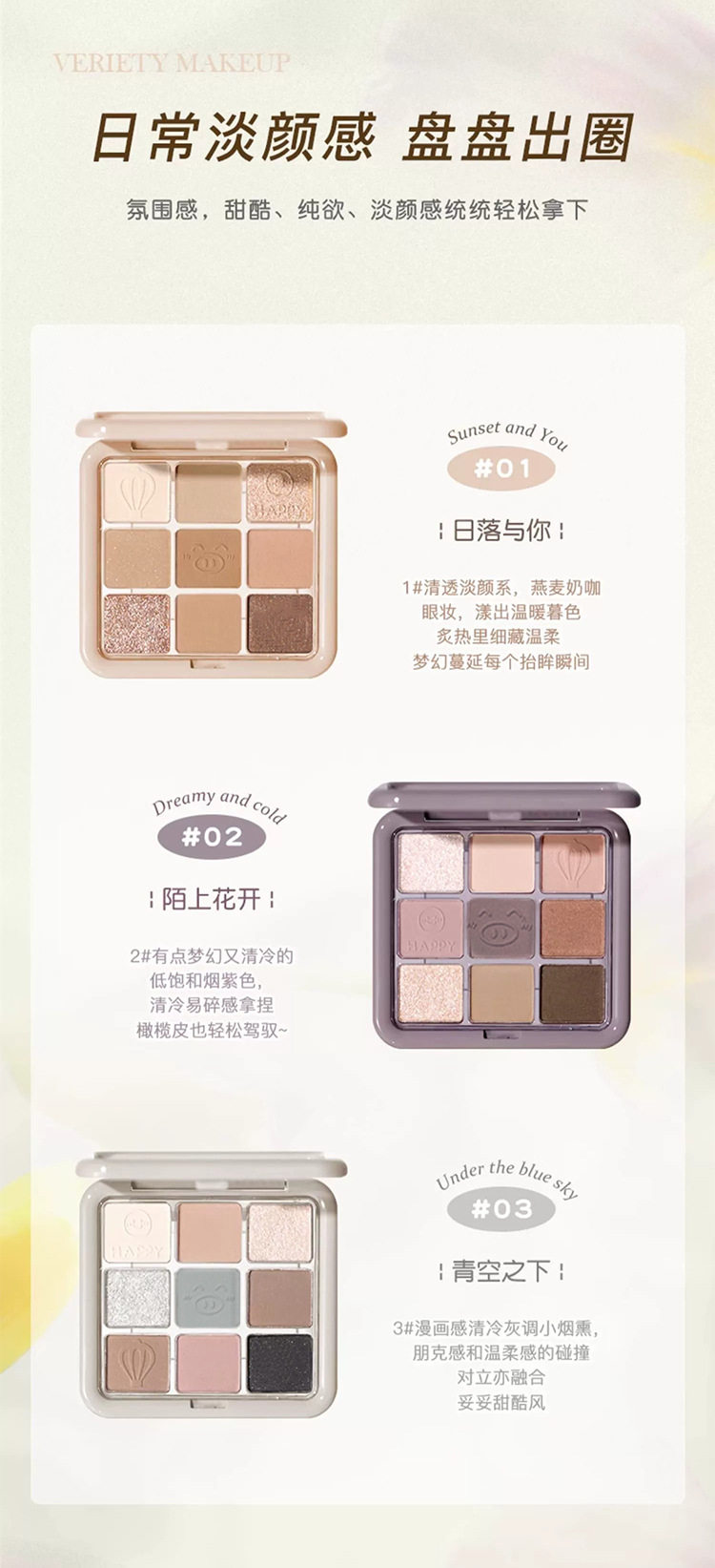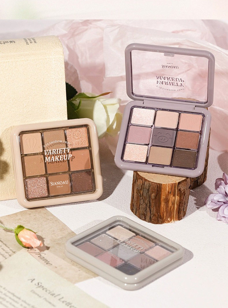 New Nine-Color Eyeshadow Palette Pearlescent Shiny Matte Earth Color Student Party Affordable Eyeshadow Smoky Eye Makeup Fine Glitter
