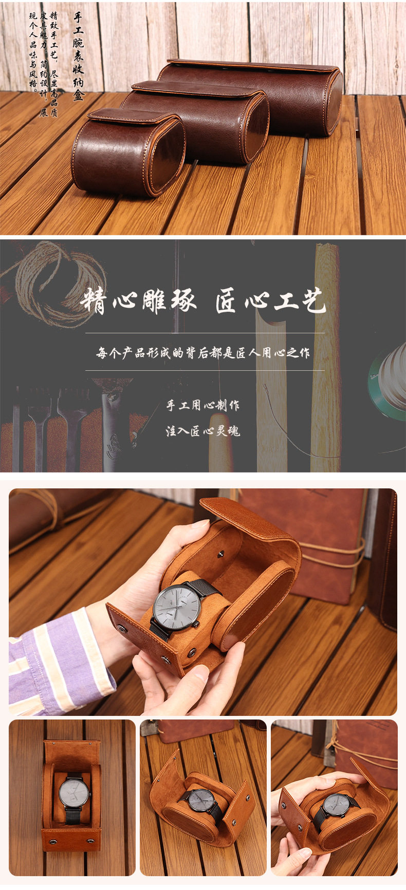 Cross-border New Genuine Leather Large Capacity Removable Hidden Buckle Watch Bracelet Collection Storage Box Creative Cowhide Watch Box