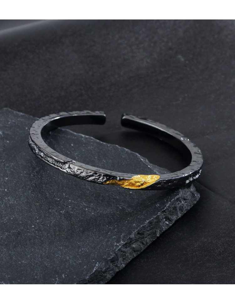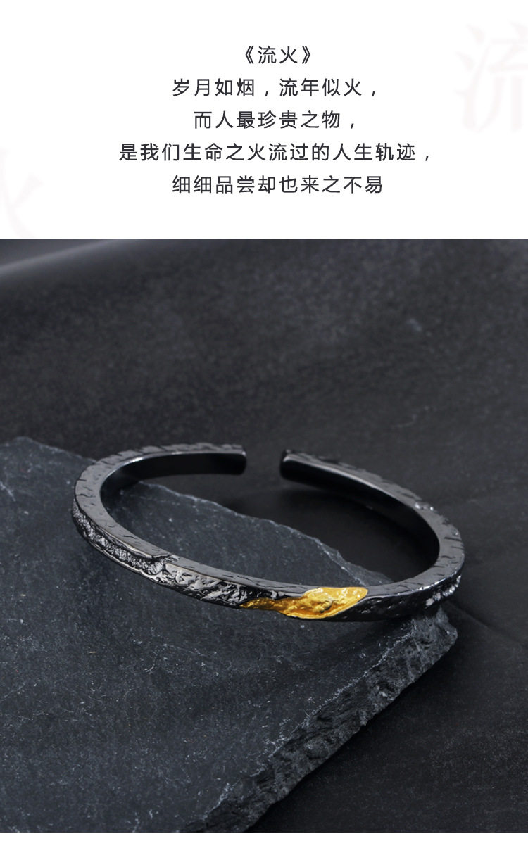 Xinqi jewelry black flowing fire Bracelet Men's trendy cold wind dark style gold texture men's solid bracelet