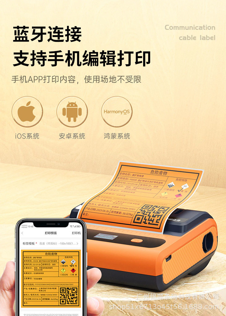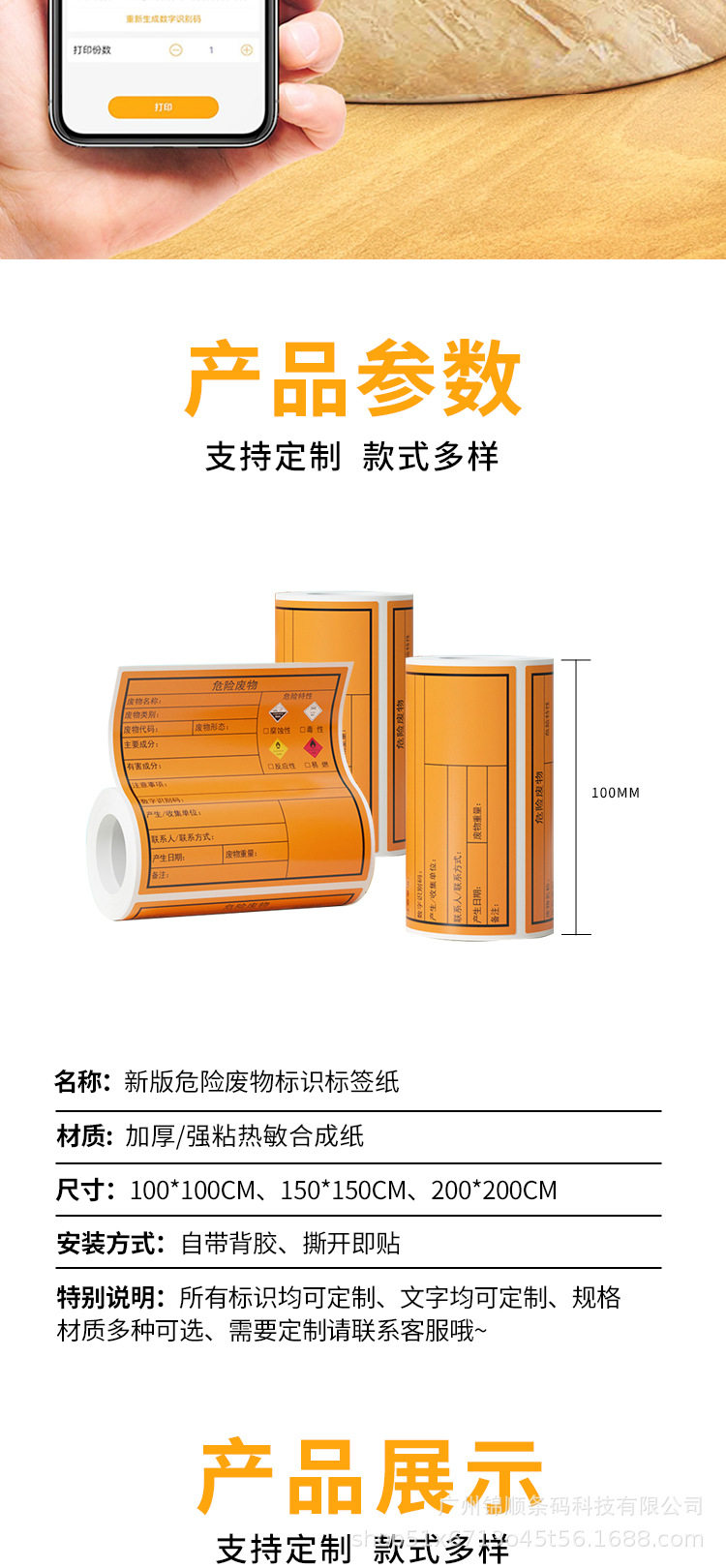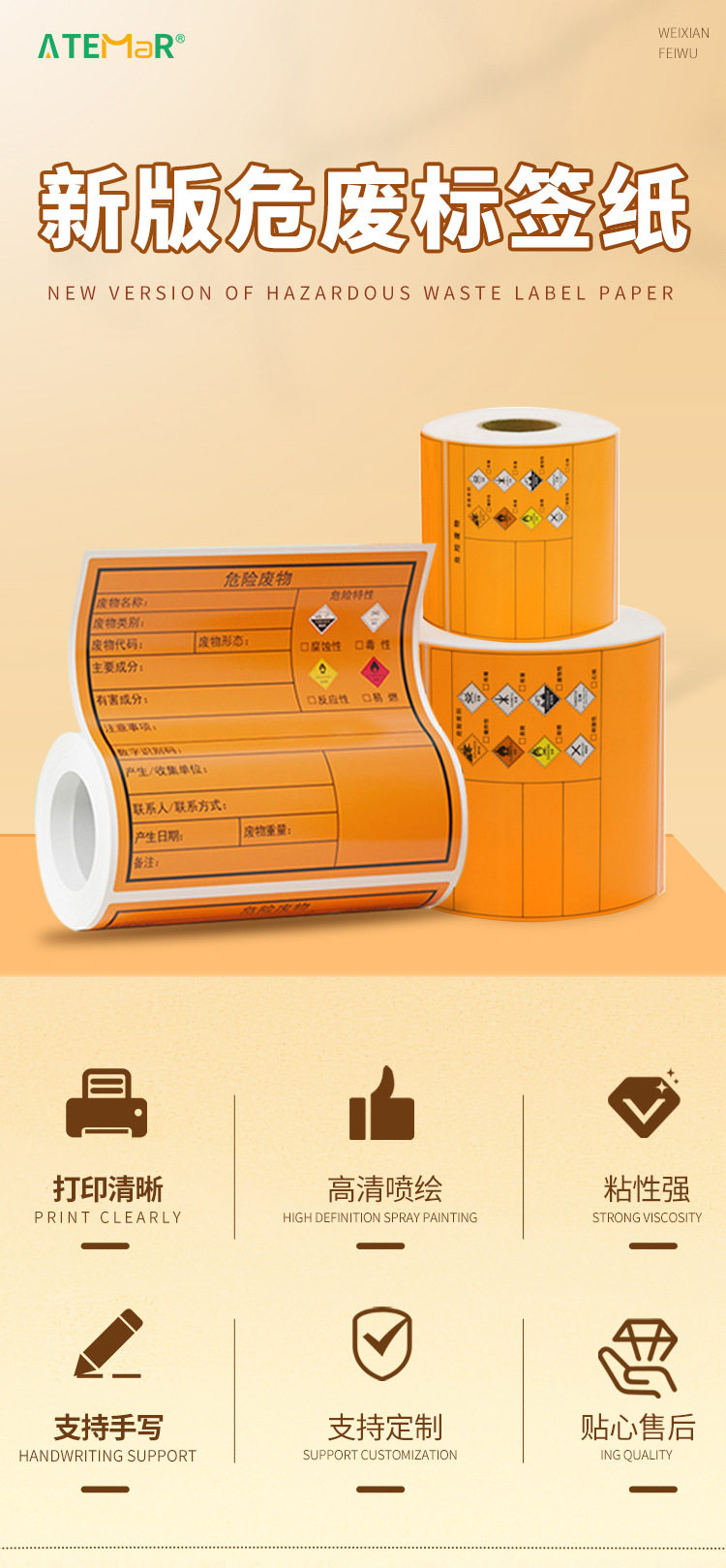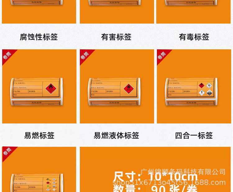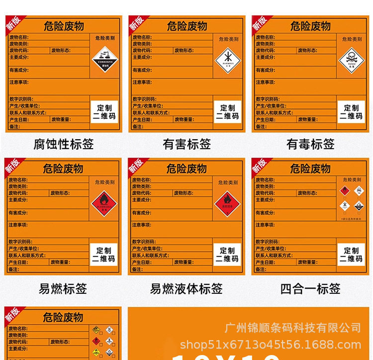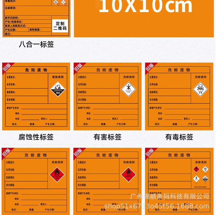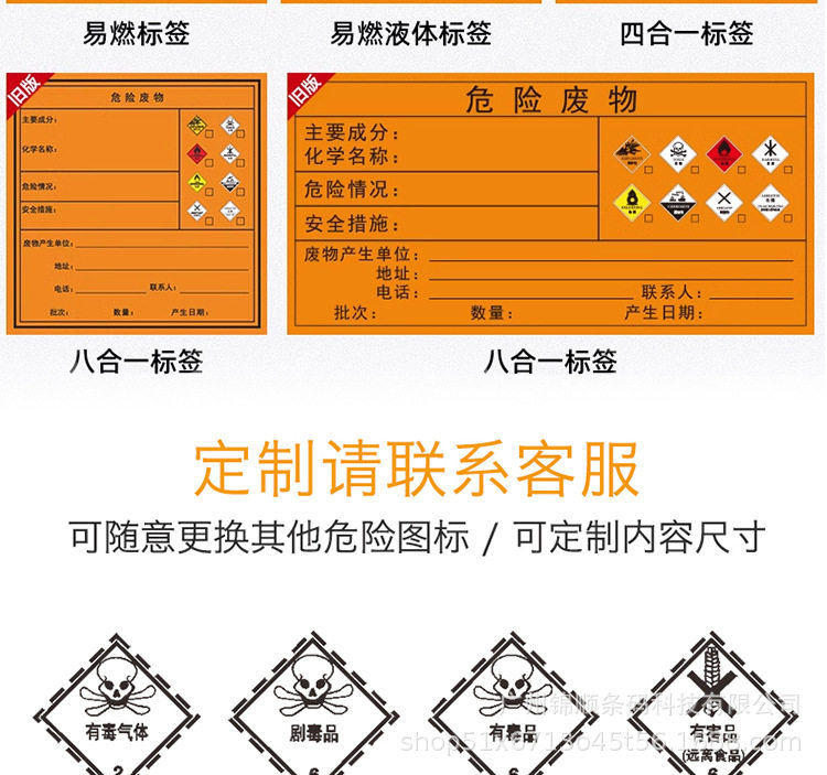 Hazardous Waste Label Paper Self-Adhesive Printing Sticker 100/150/200mm Thermal Synthetic Paper Orange Self-Adhesive