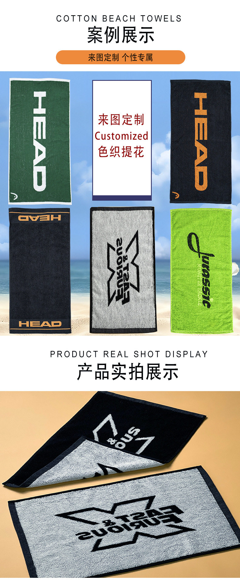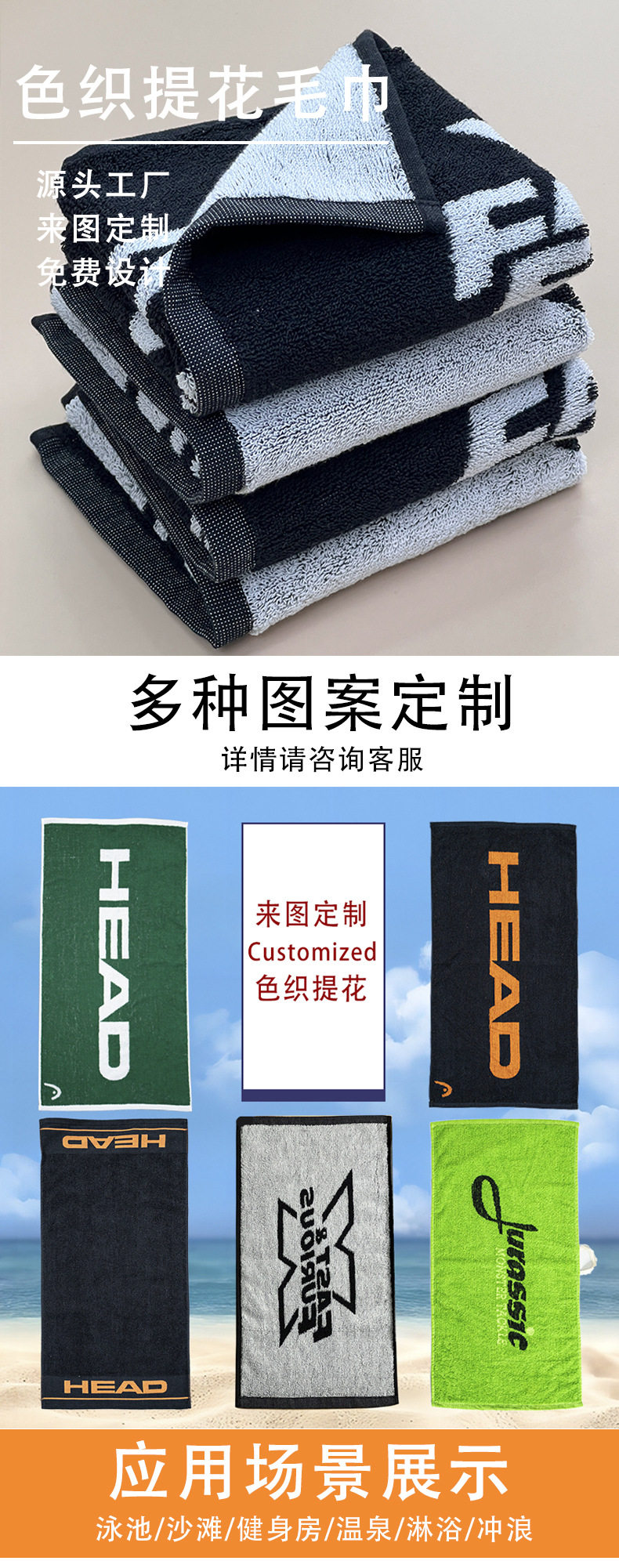 Cross-border custom yarn-dyed towel pure cotton thickened jacquard swimming basketball running sweat-absorbent men and women fitness sports towel