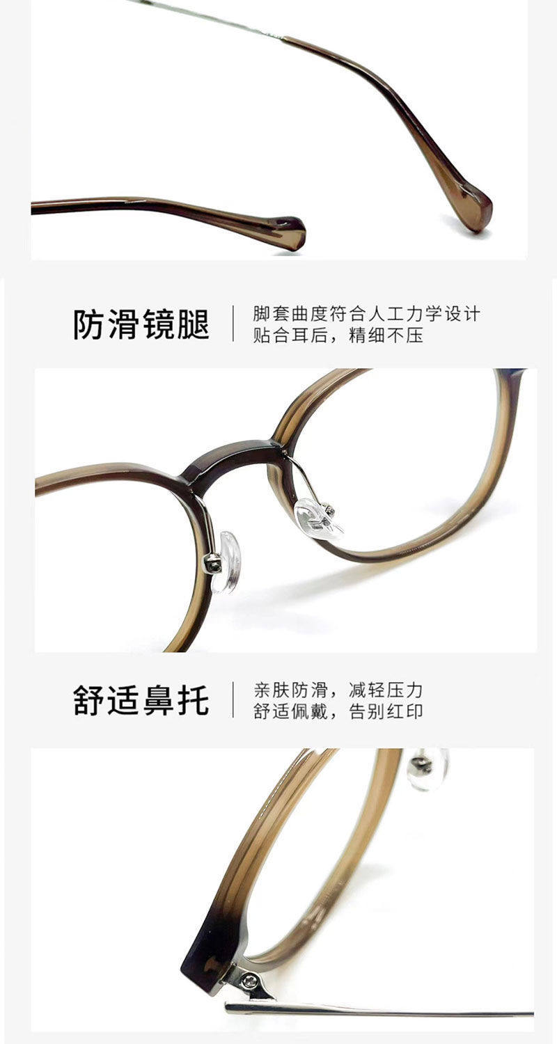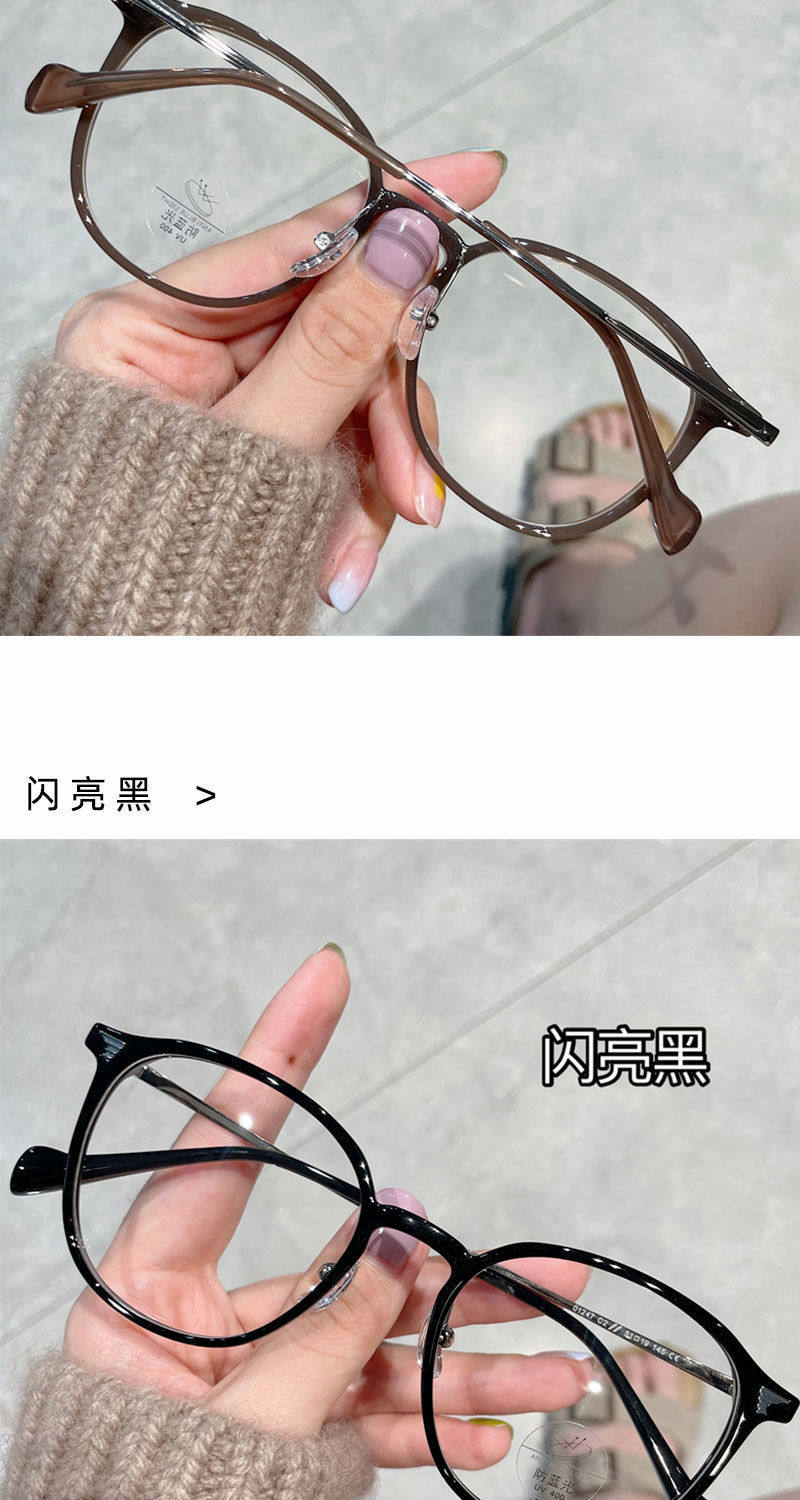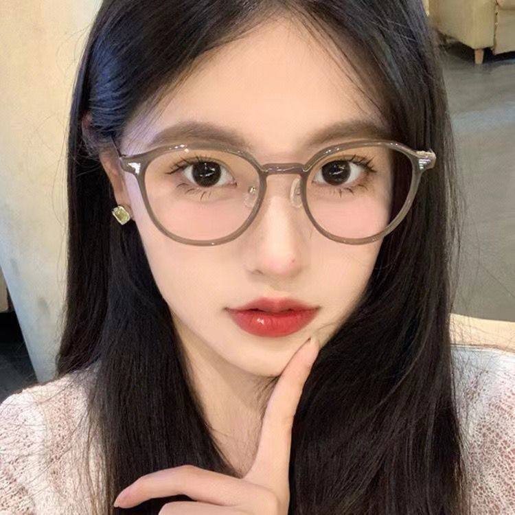 Ultra Light New Japanese Style Retro Glasses Frame Women's Round Frame Glasses Frame Myopia Cold Tea Color Can be Fit with Preference
