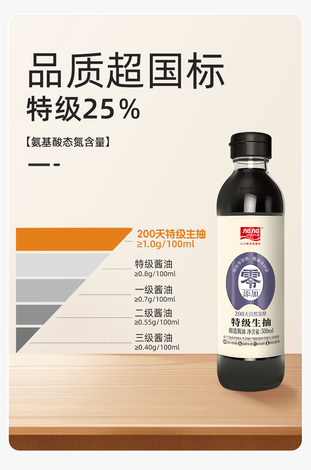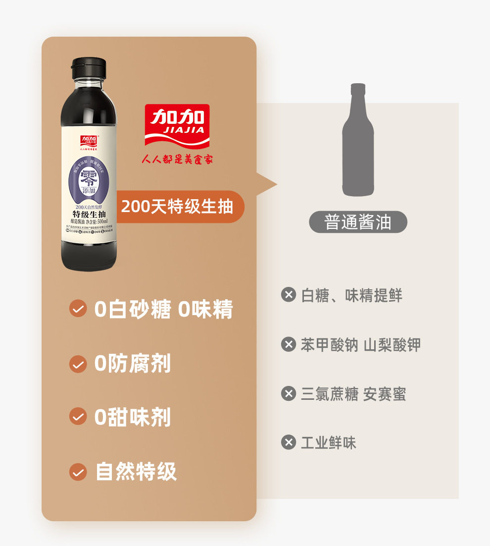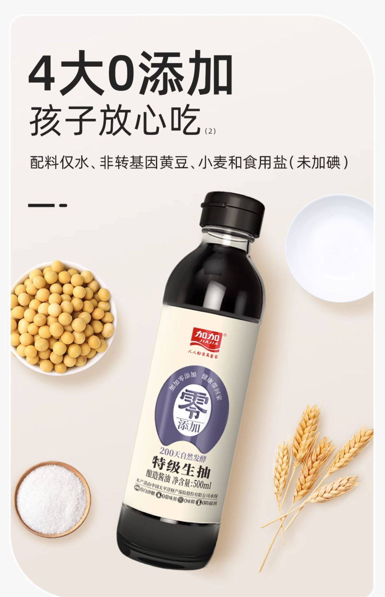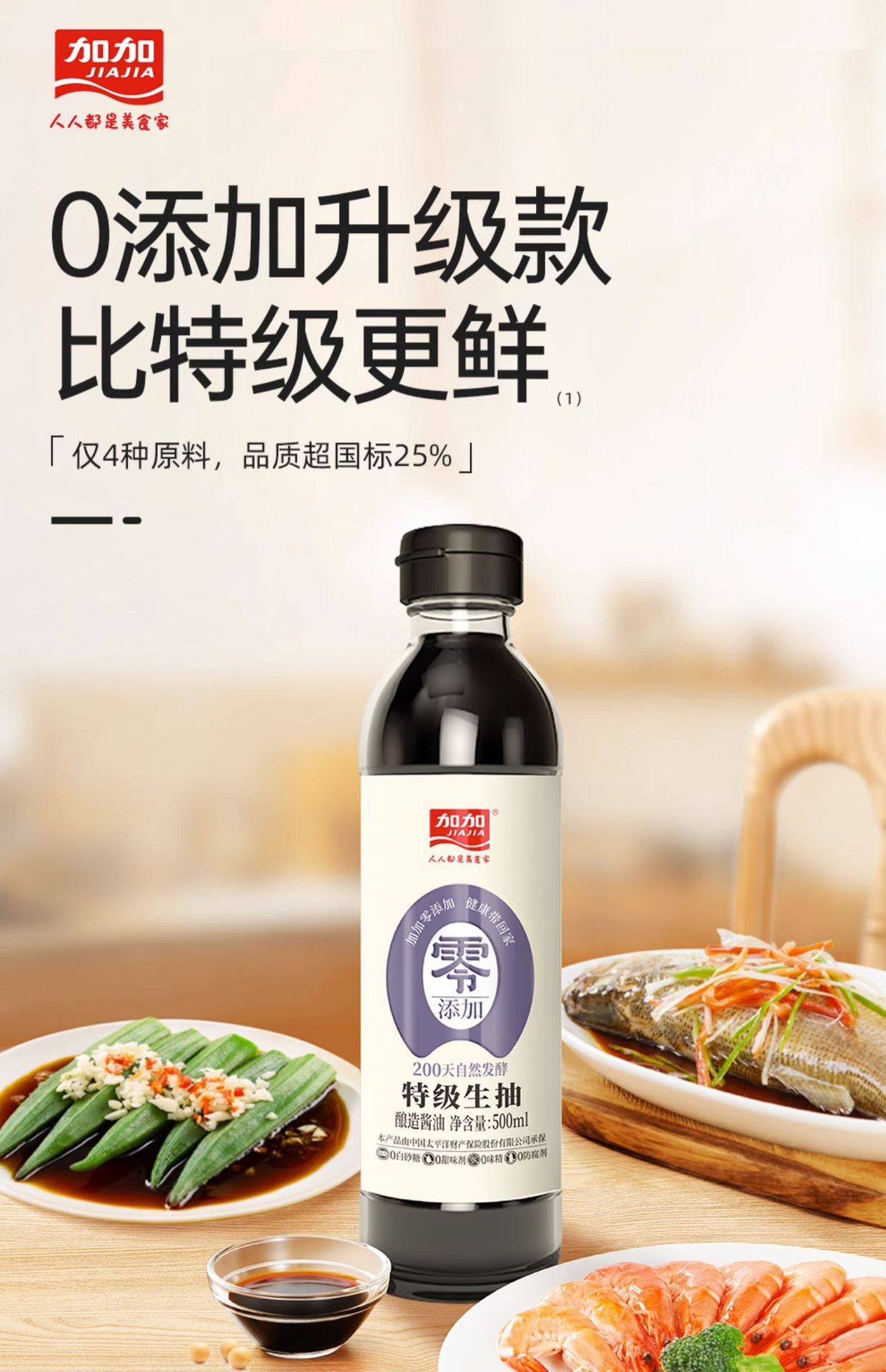 Jiajia Zero Added Soy Sauce 200 Days Brewed Household Premium Light Soy Sauce 500ml Official Authentic