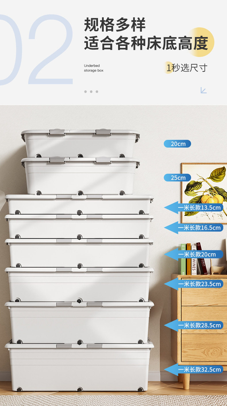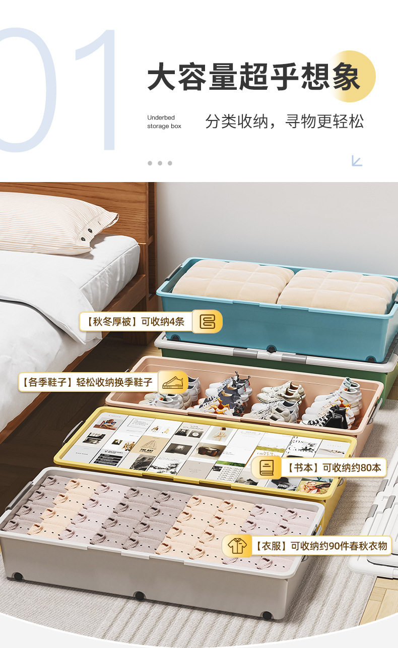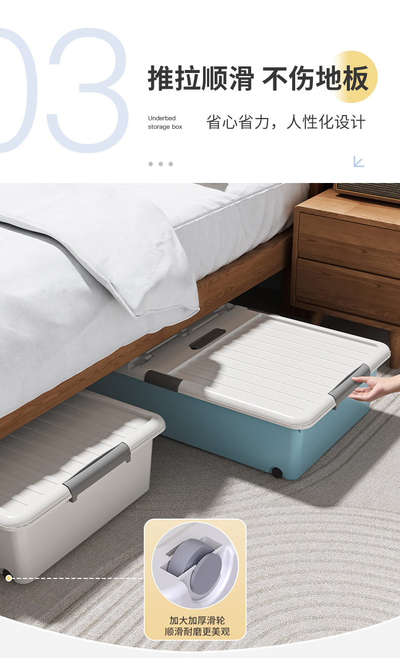 Bed Storage Box with Wheels Drawer Type Flat Clothes Quilt Storage Artifact Household Finishing Box Bed Storage Box