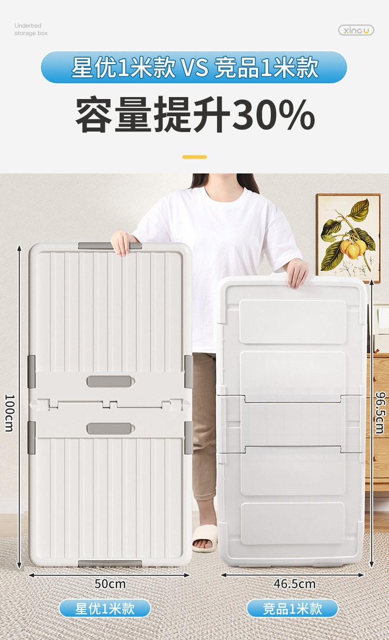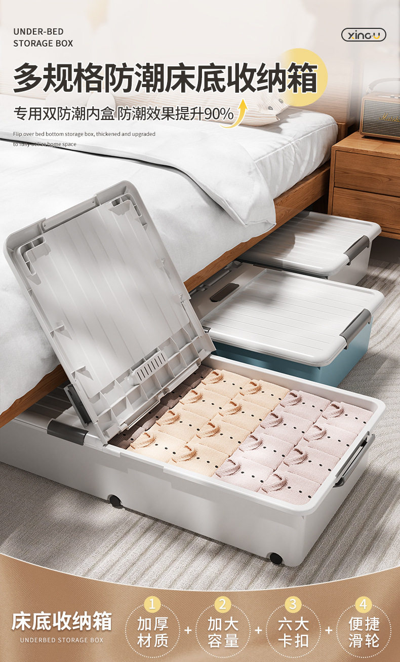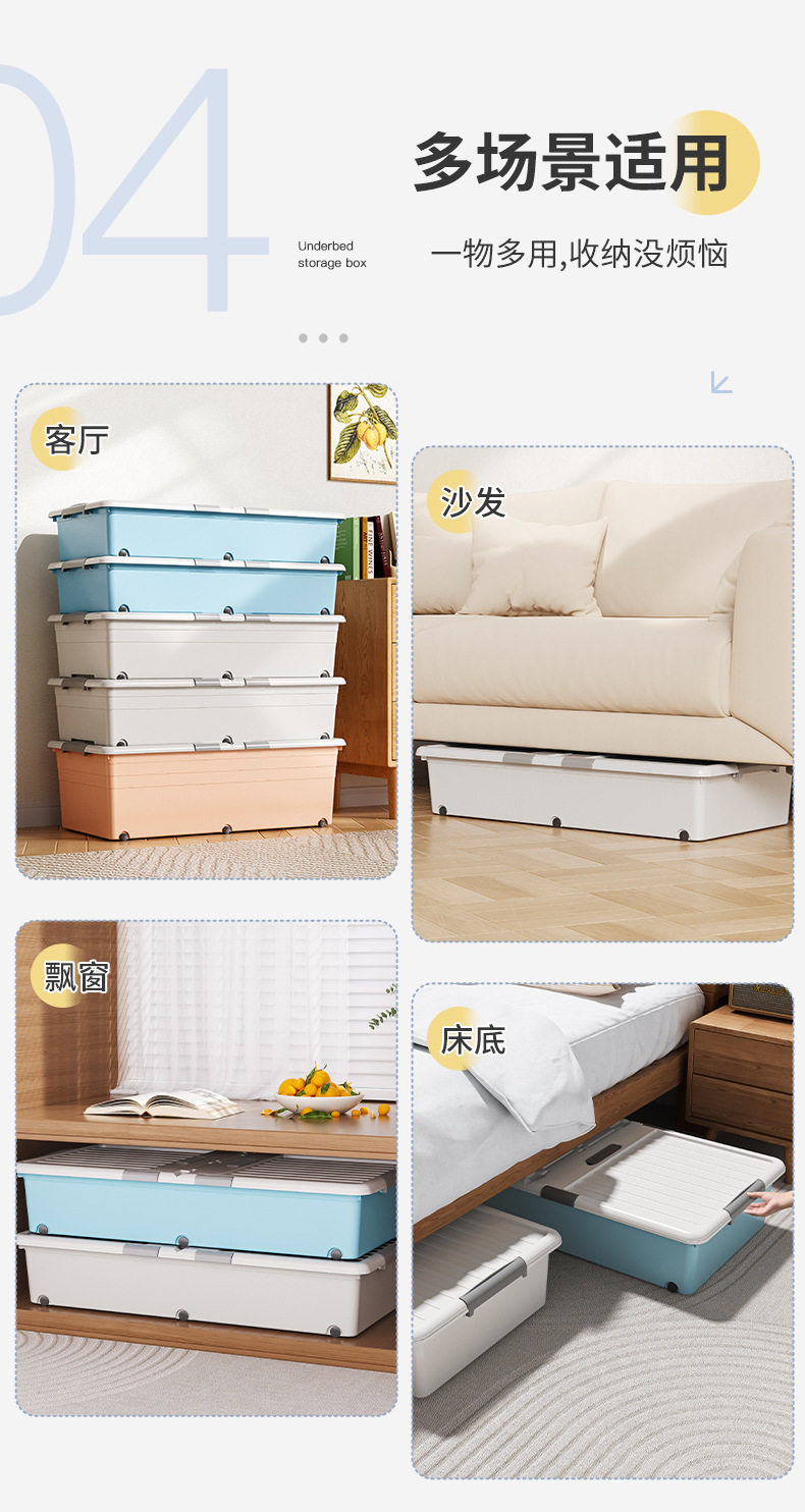 Bed Storage Box with Wheels Drawer Type Flat Clothes Quilt Storage Artifact Household Finishing Box Bed Storage Box