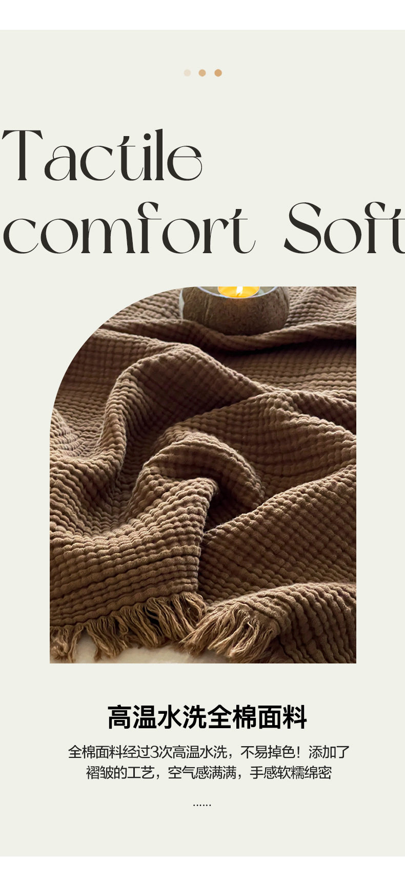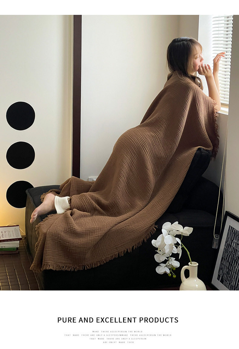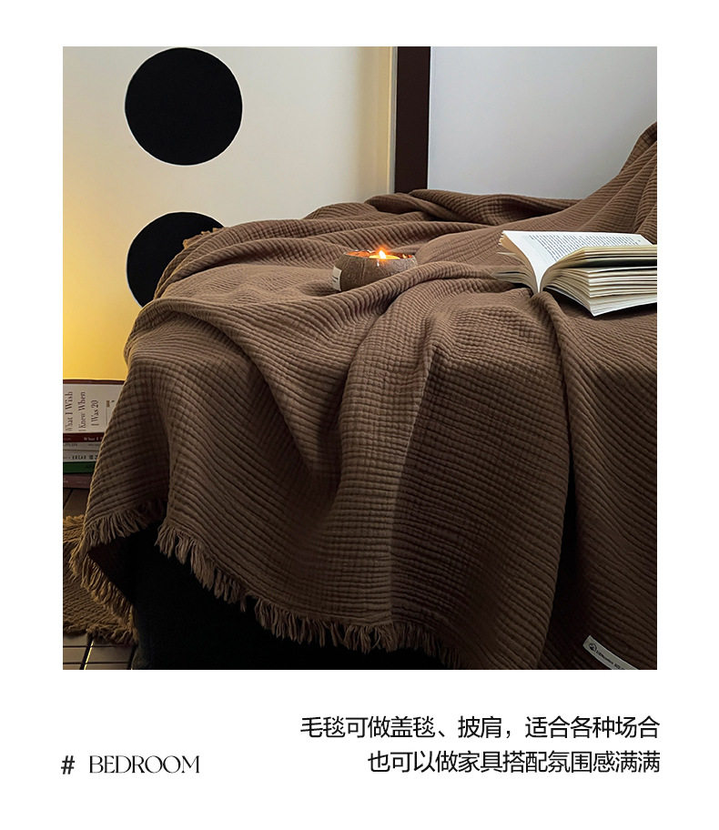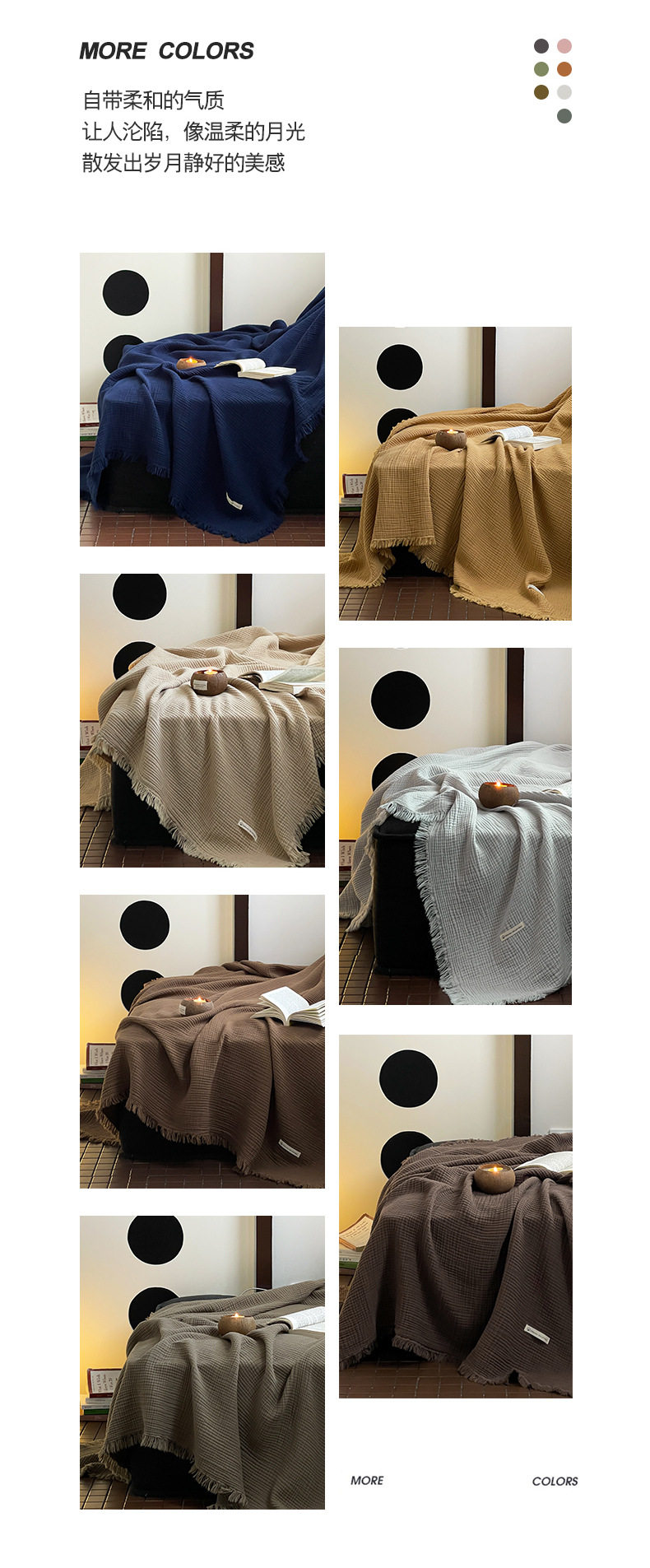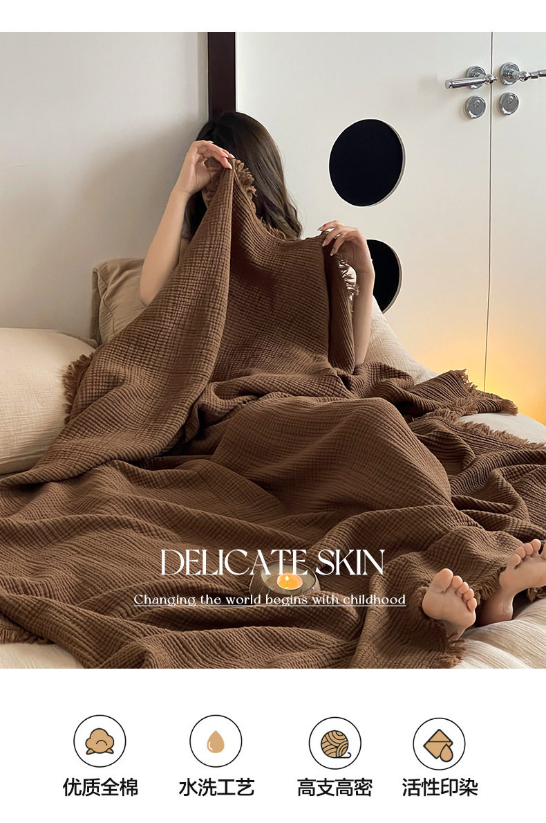Yuchuan preferred, Maillard four-layer wrinkled yarn tassel blanket cotton nap blanket hotel with air conditioning blanket