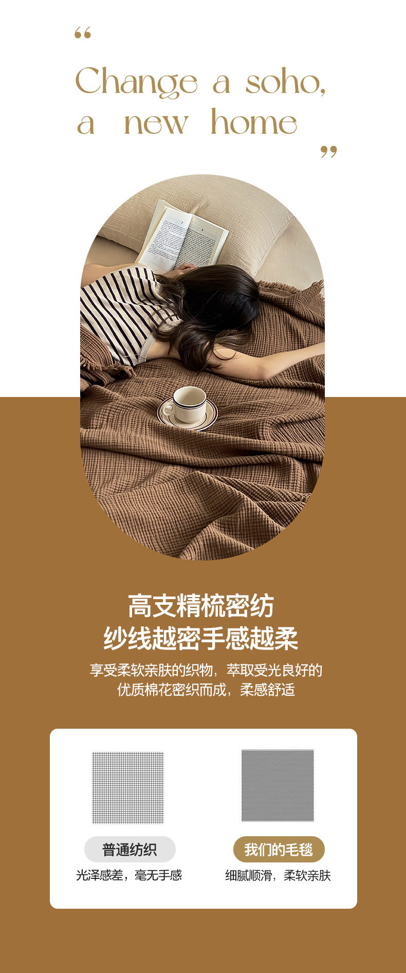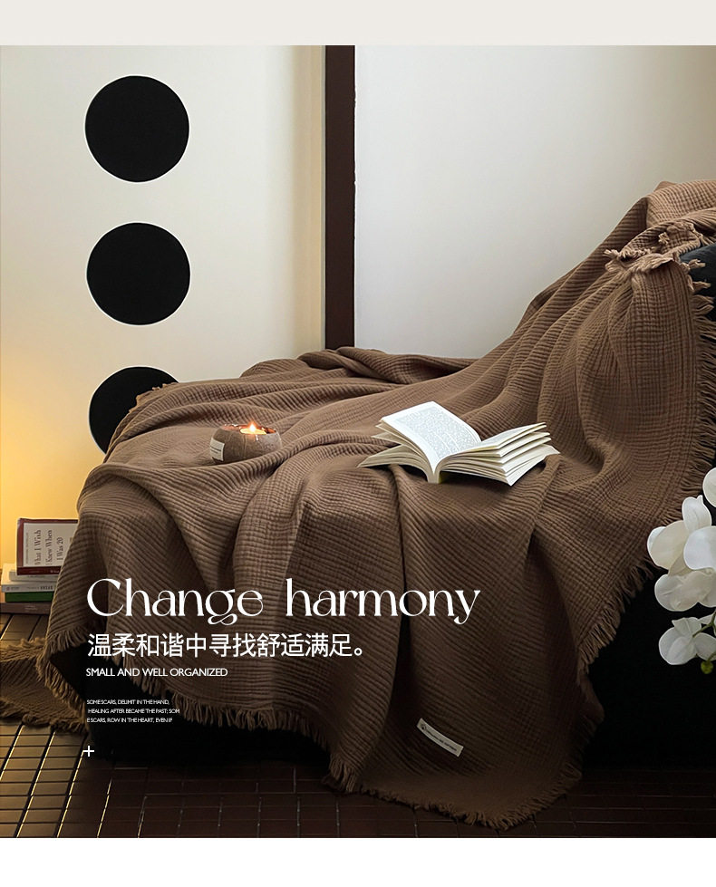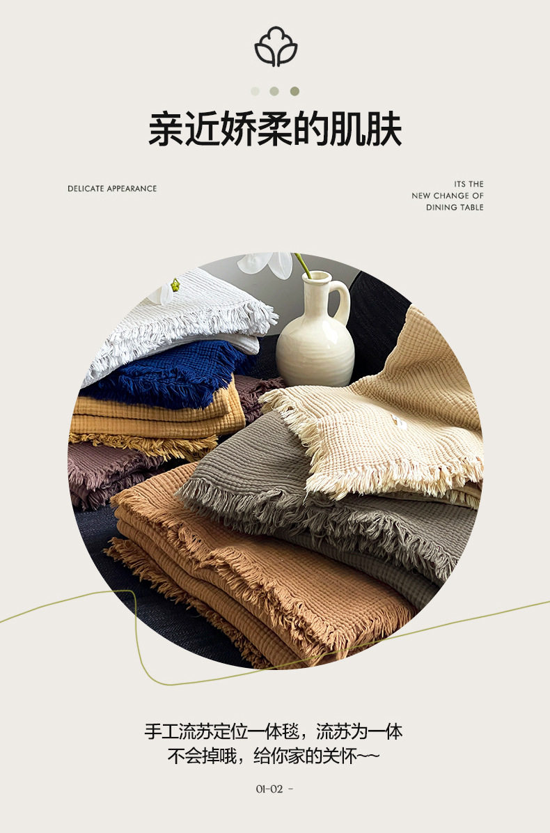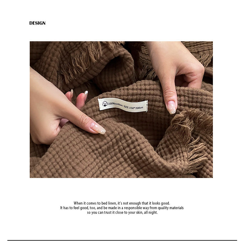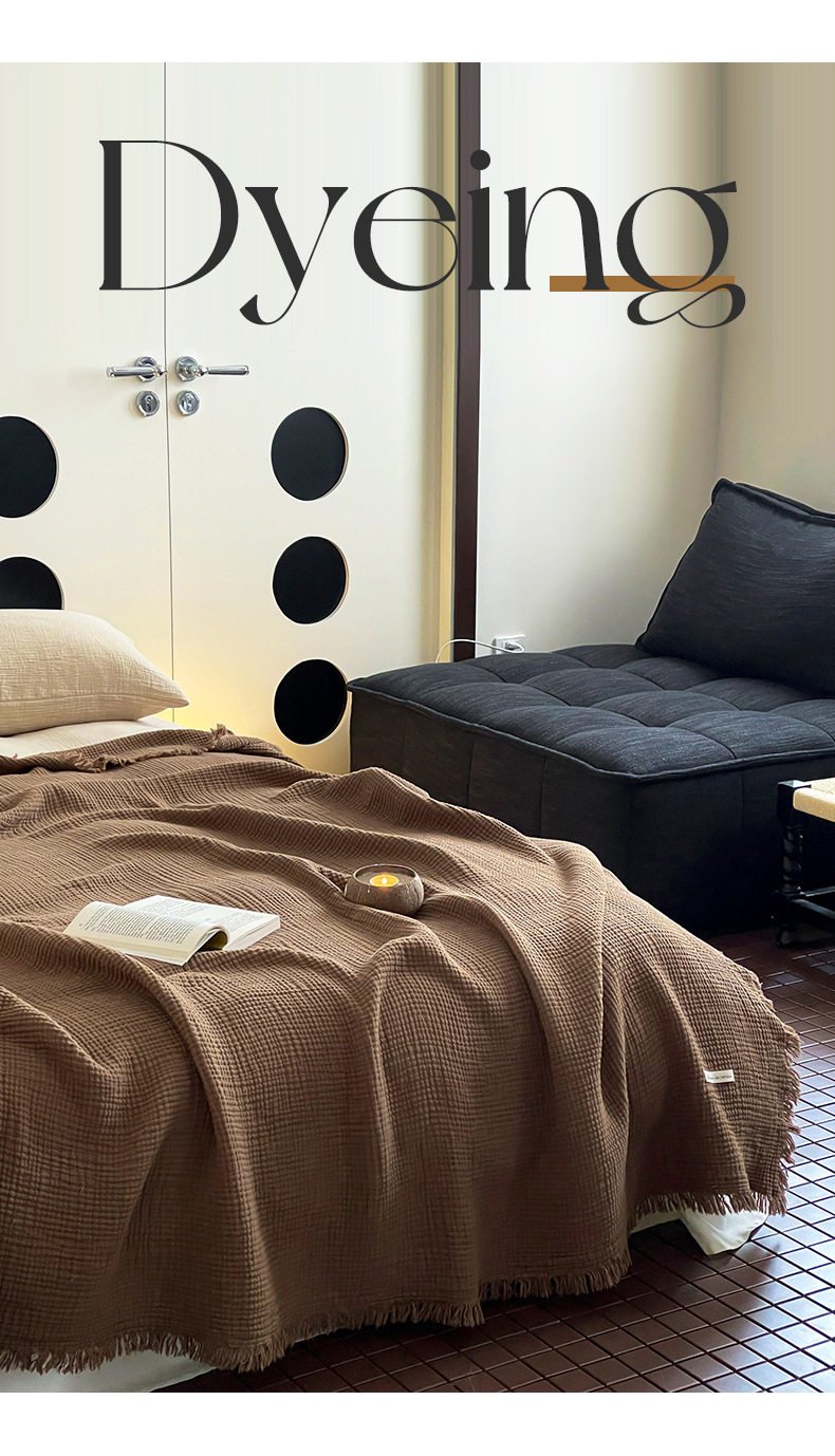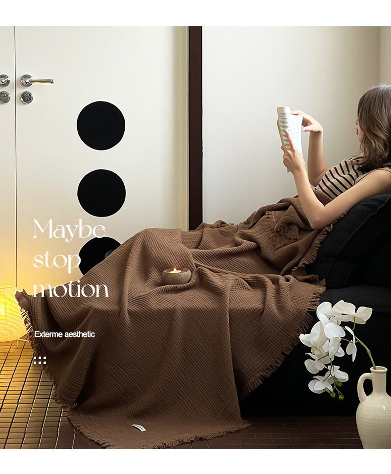 Yuchuan preferred, Maillard four-layer wrinkled yarn tassel blanket cotton nap blanket hotel with air conditioning blanket