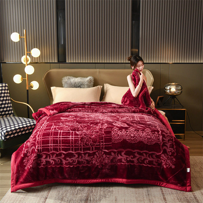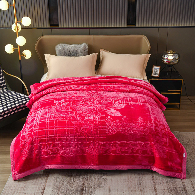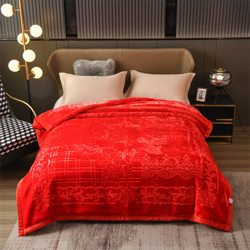 Blanket thickened double-layer cloud blanket plain three-dimensional carved embossed velvet blanket wedding gift blanket Raschel blanket blanket