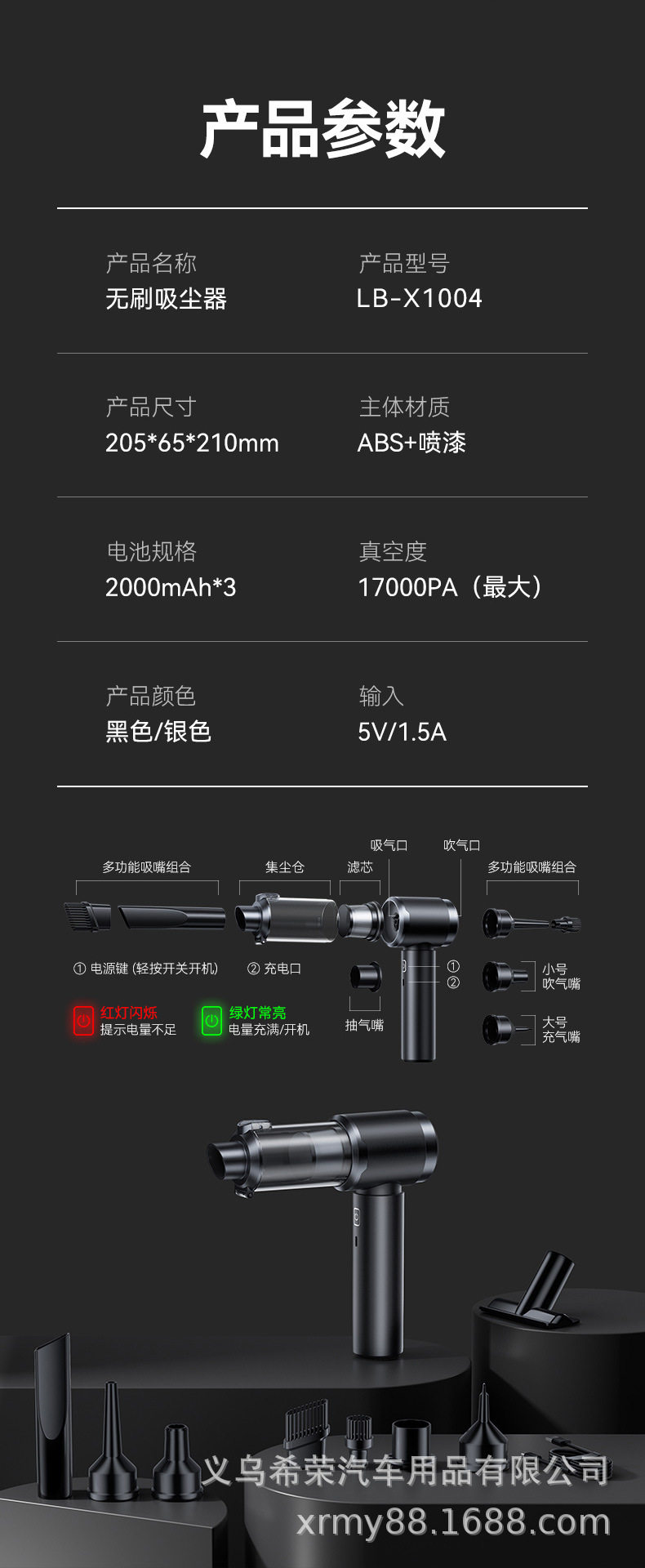 | Color classification | Brushed black gold supreme english packaging,Brushed white and silver supreme english packaging,Brushed black and gold supreme model [2 filter elements + aviation bag],Lb-x1004 black two-speed brushless 2000mah*3+ one-click dust dumping,Lb-x1004 silver purple two-speed brushless 2000mah*3+ one-click dust dumping |
