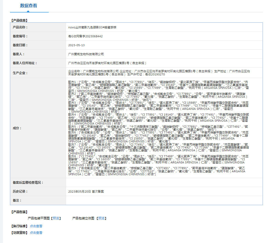 | Non-cosmetics filing certificate number | Yue G makeup net preparation word 2016064918 |