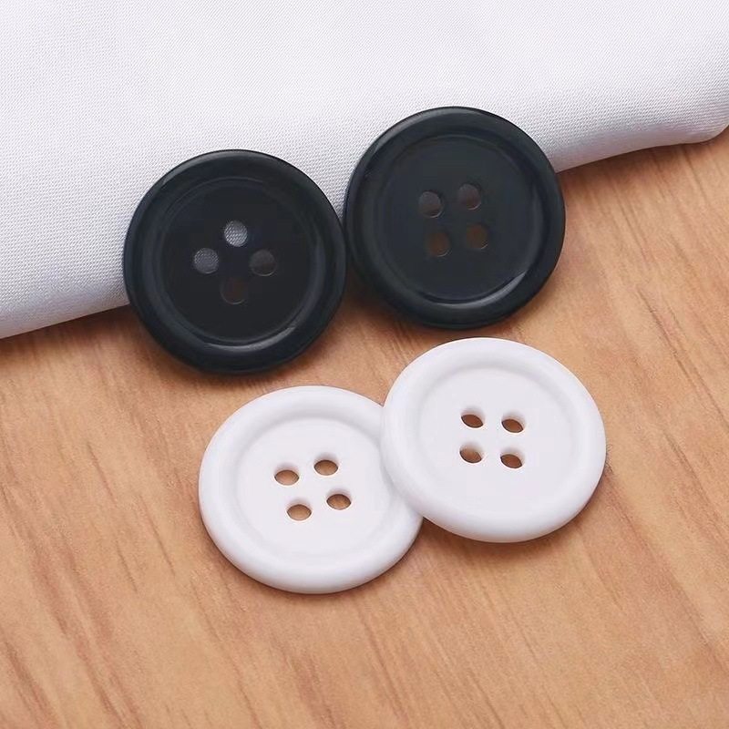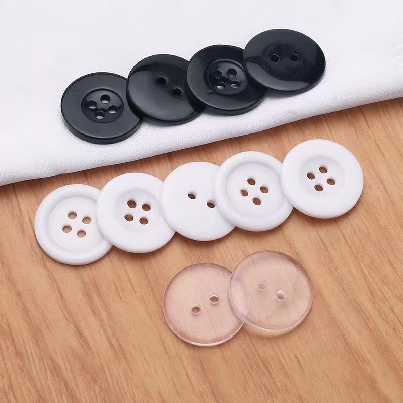 Resin button transparent two-eye Bread Buckle Black thin edge shirt button white four-eye wide edge windbreaker buckle accessories