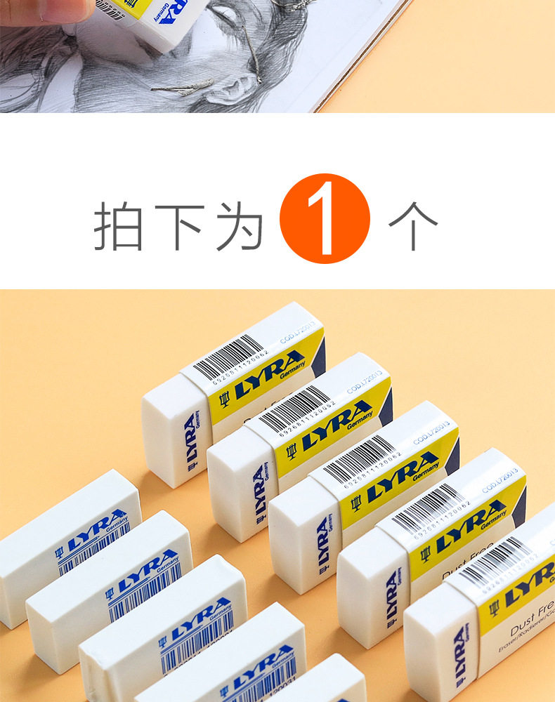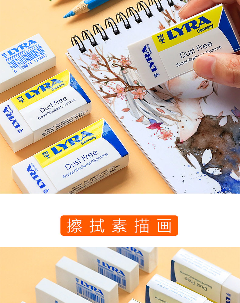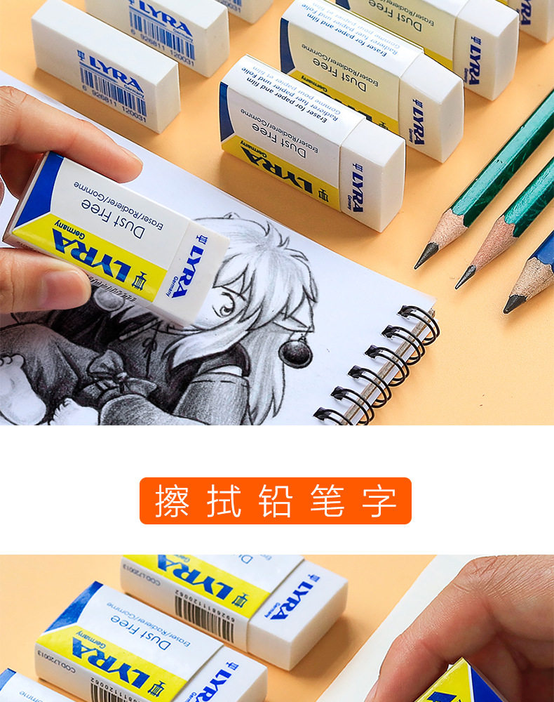 German Lyra Yiya Eraser for Primary School Students Special Art Sketch Eraser Large Block Less Crumbs Exam