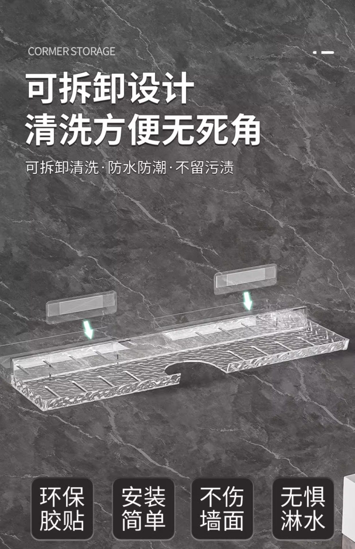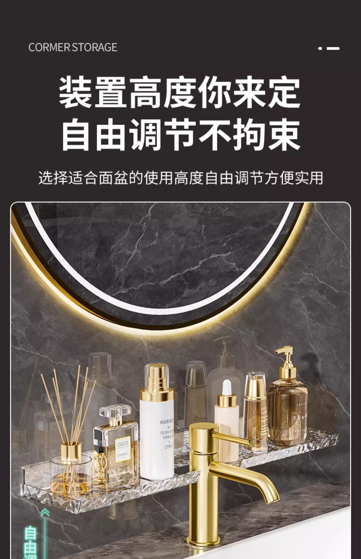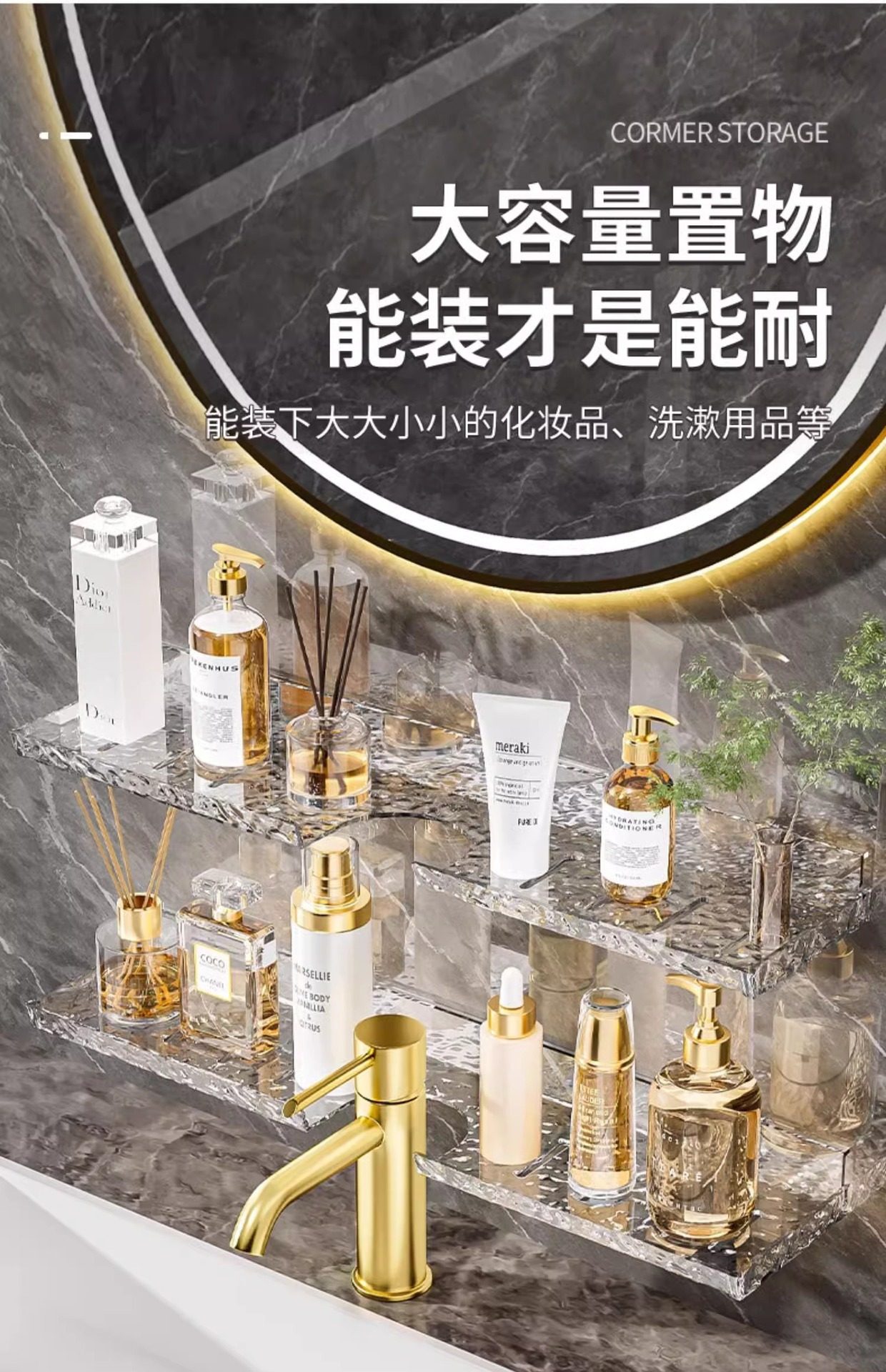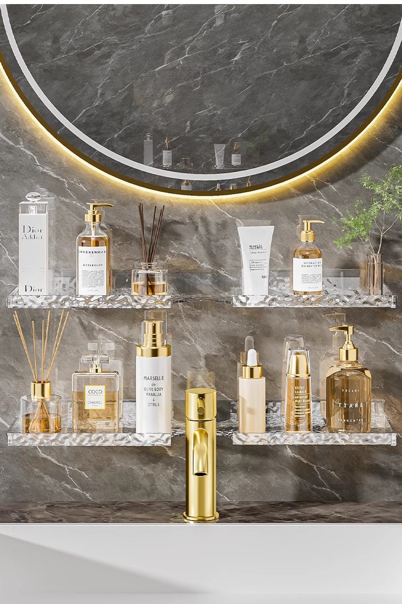 Washstand storage rack Glacier pattern bathroom wash basin faucet mirror front storage rack punch-free wall-mounted