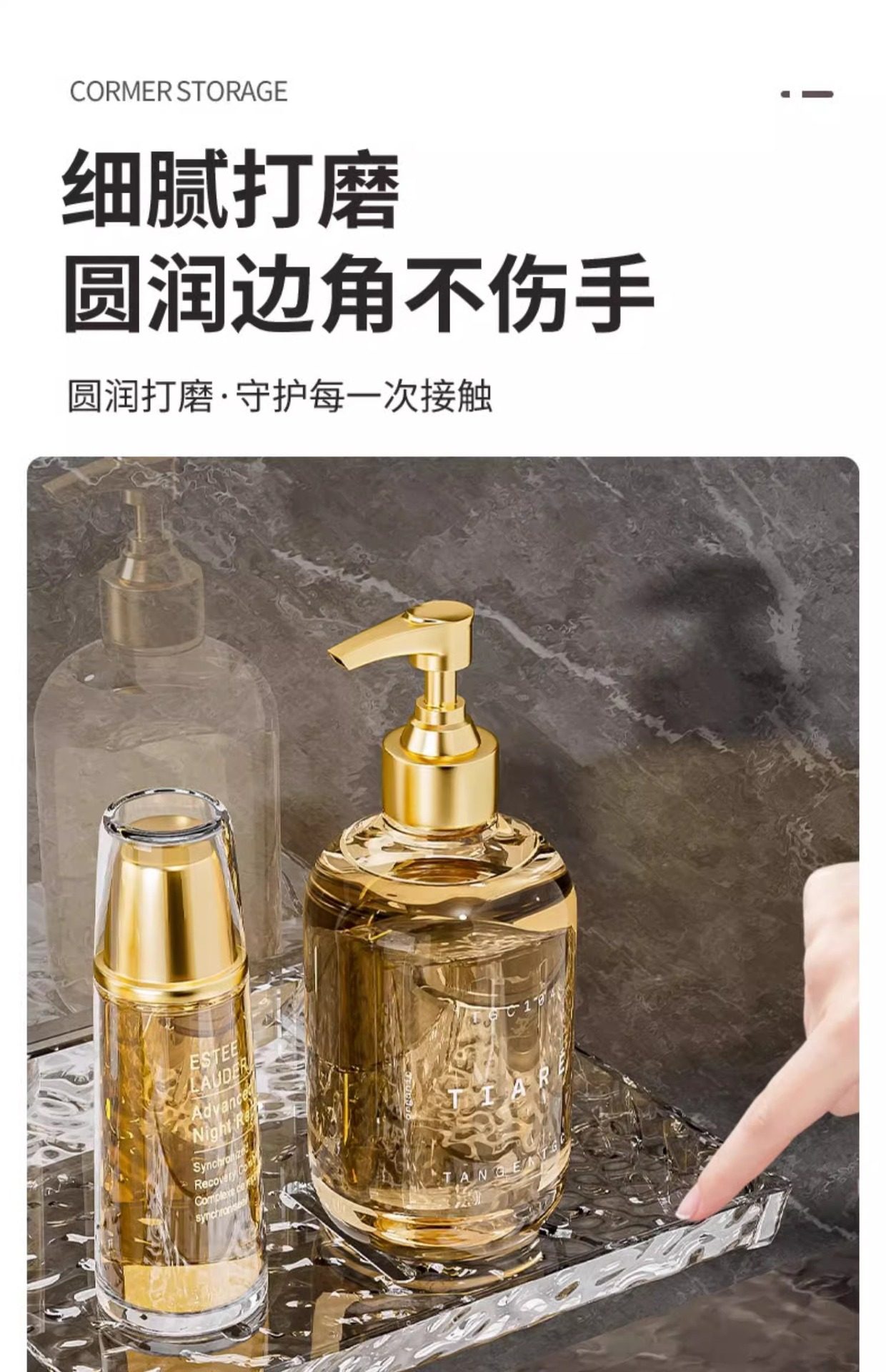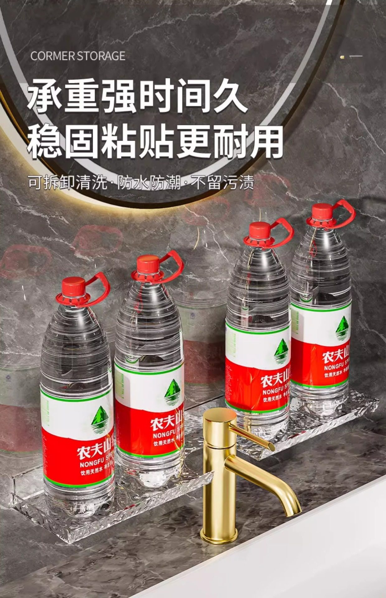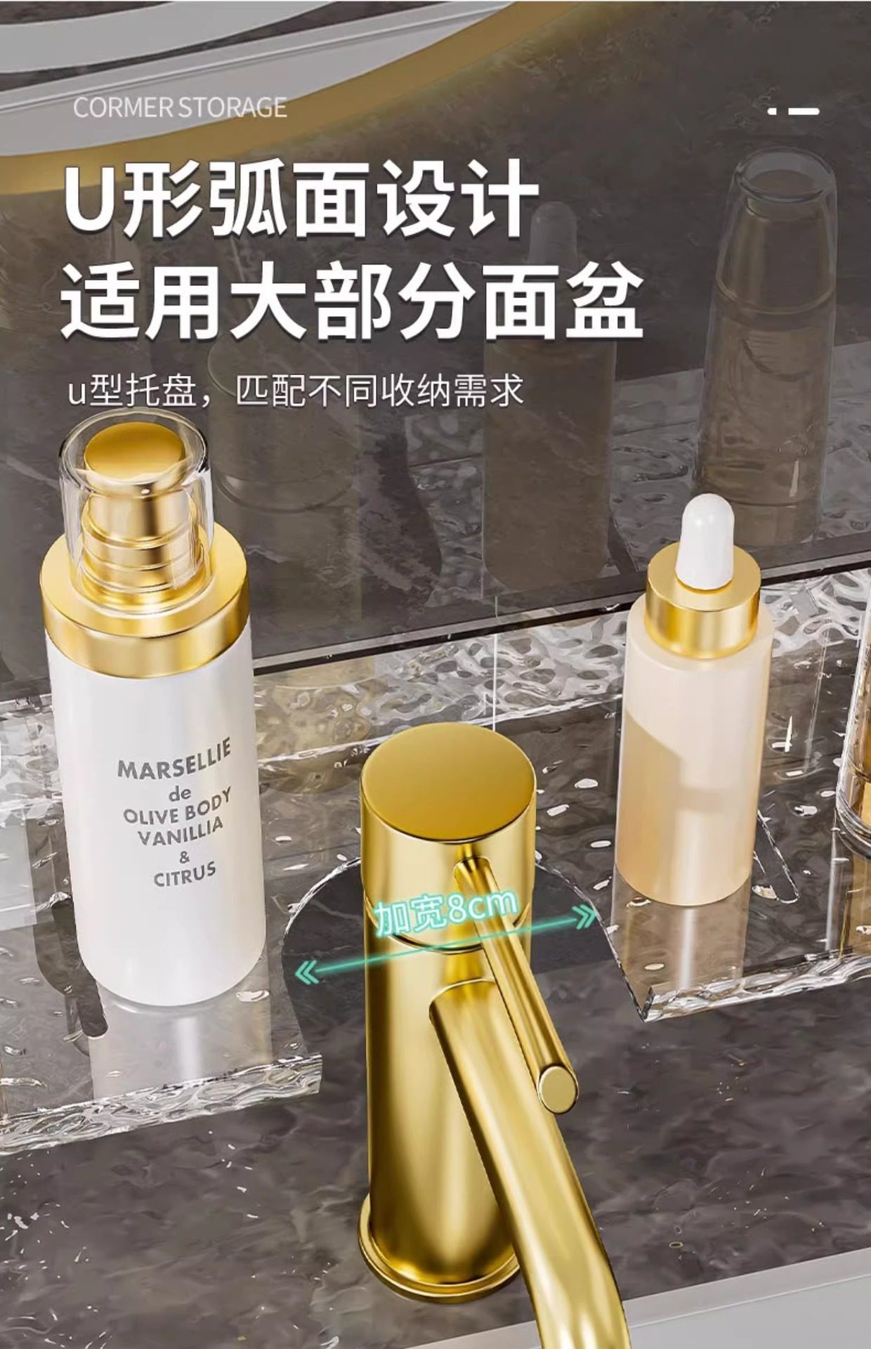 Washstand storage rack Glacier pattern bathroom wash basin faucet mirror front storage rack punch-free wall-mounted