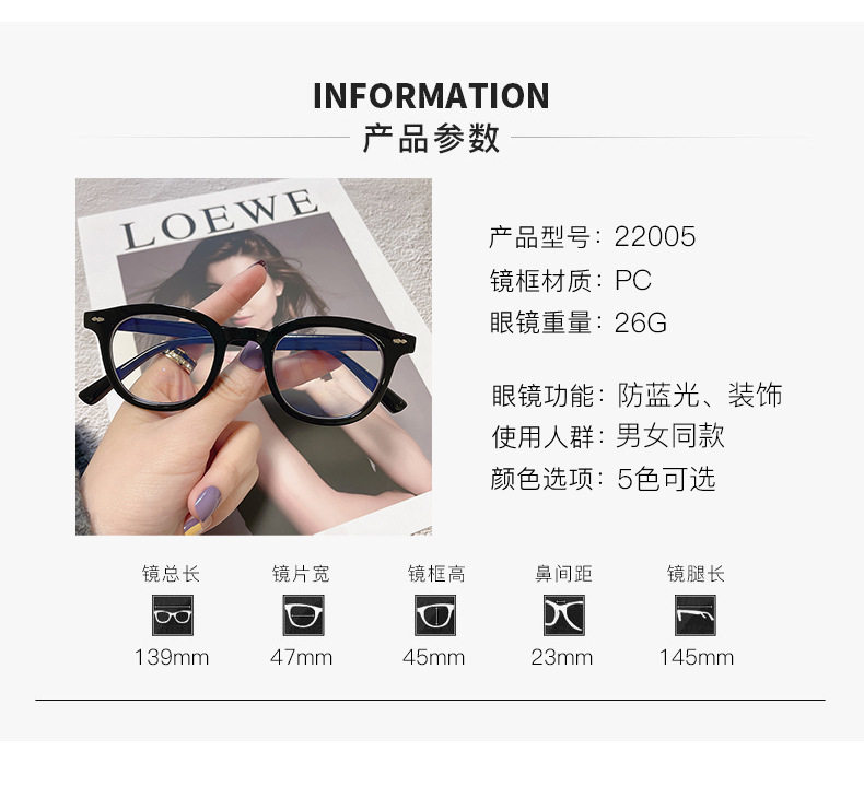 | Frame color | Bright black frame,Hawksbill frame,Gray frame,Transparent white frame,Beige frame |