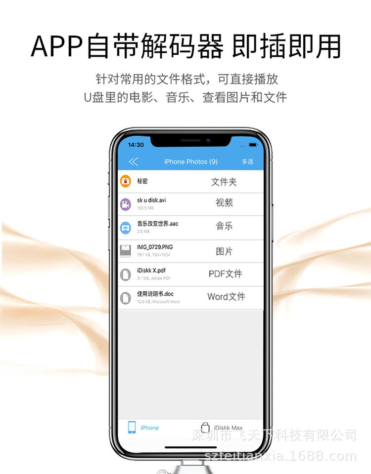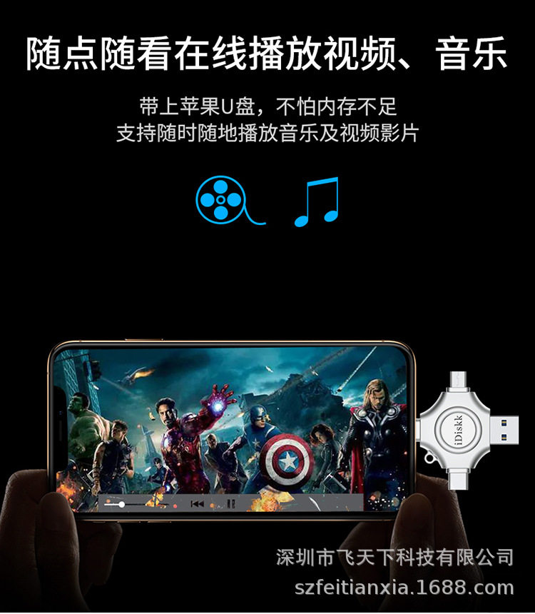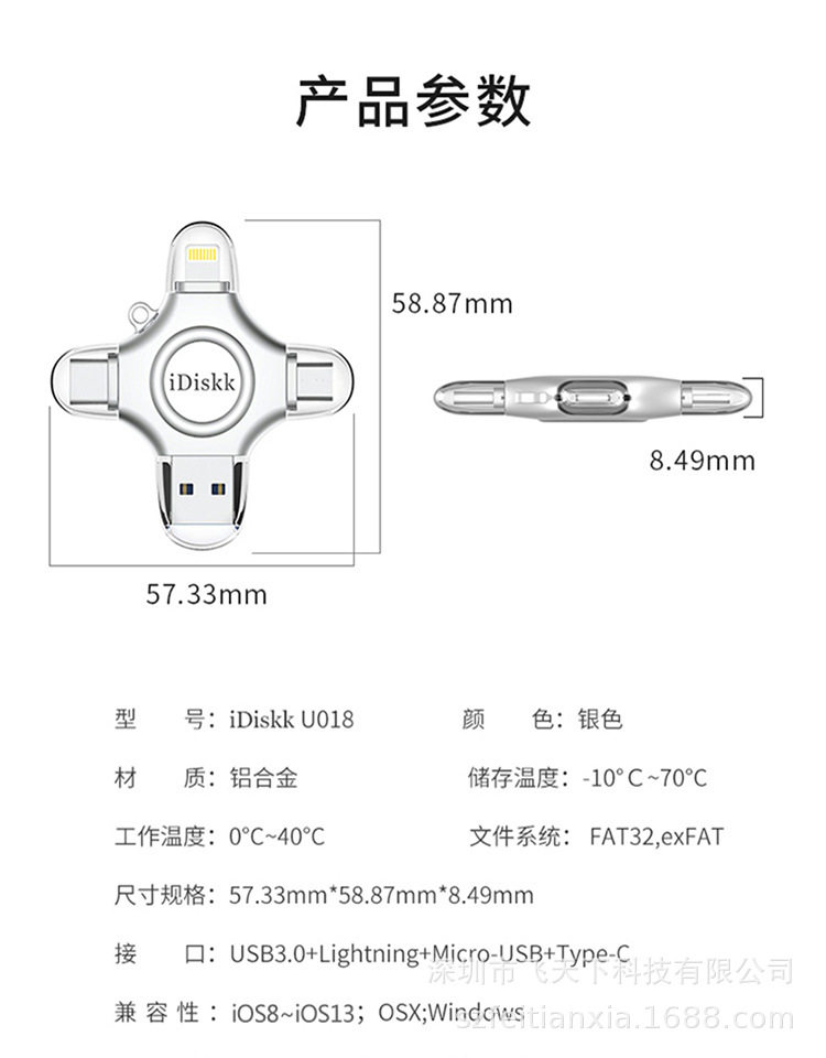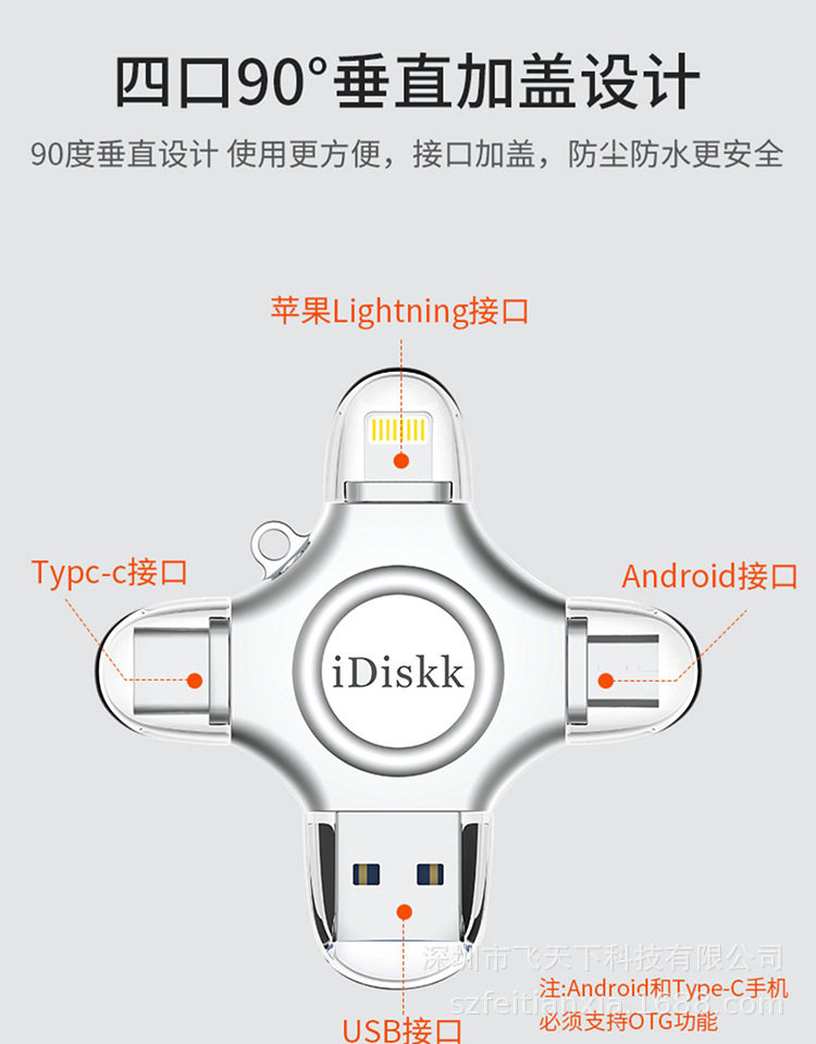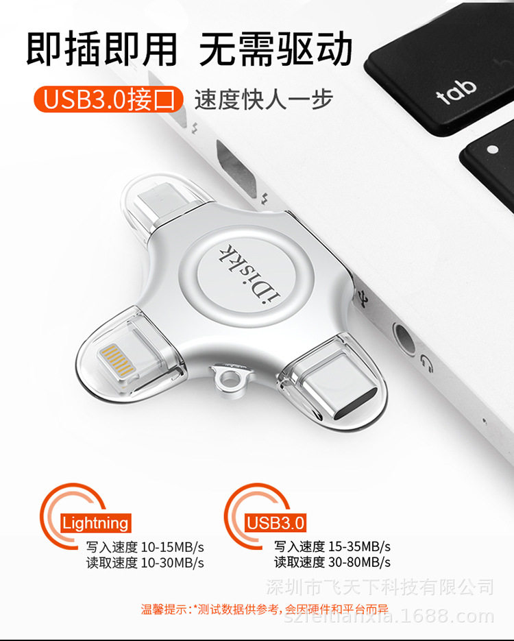 Idiskk Usb3.0 Type-C Four-In-One Mobile Phone and Computer Universal U Disk Video Photo Backup Mfi Certification