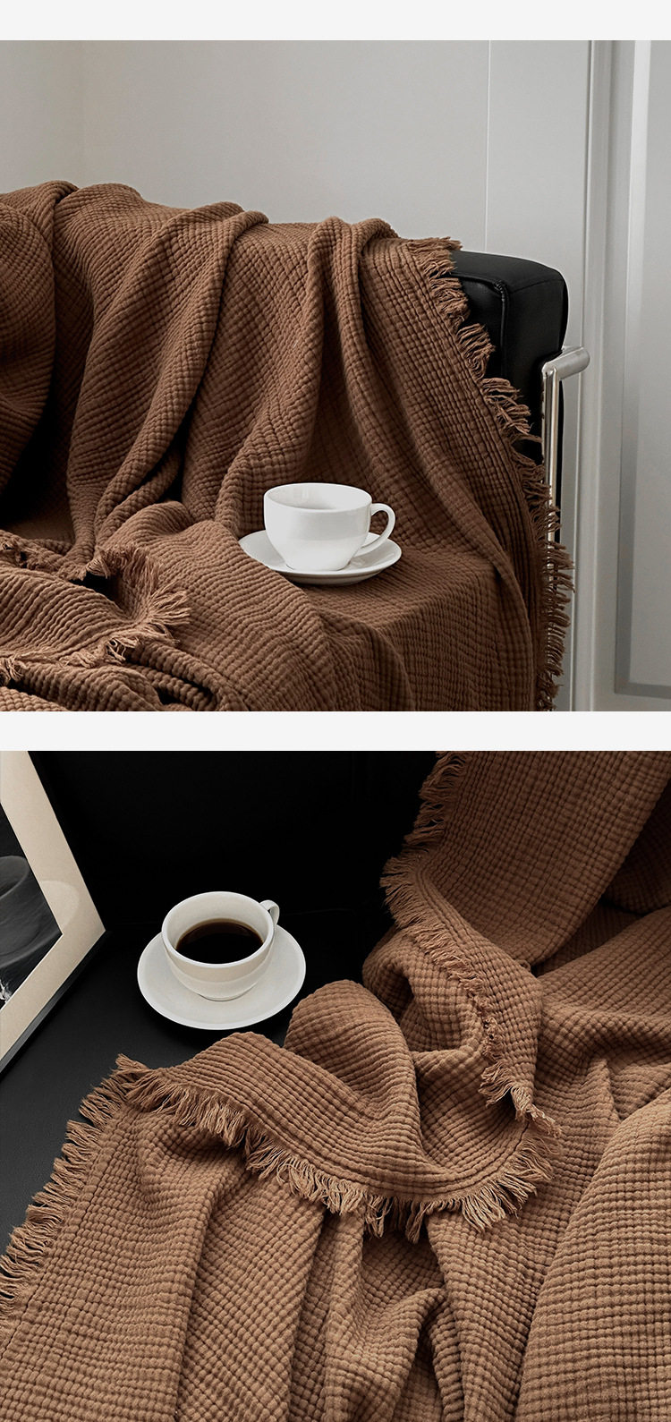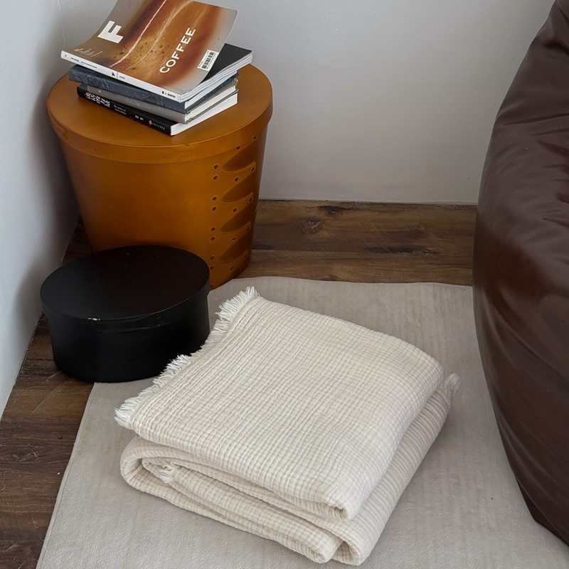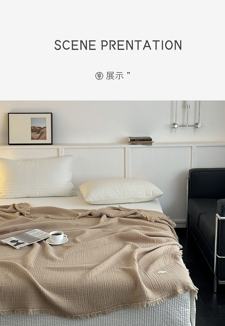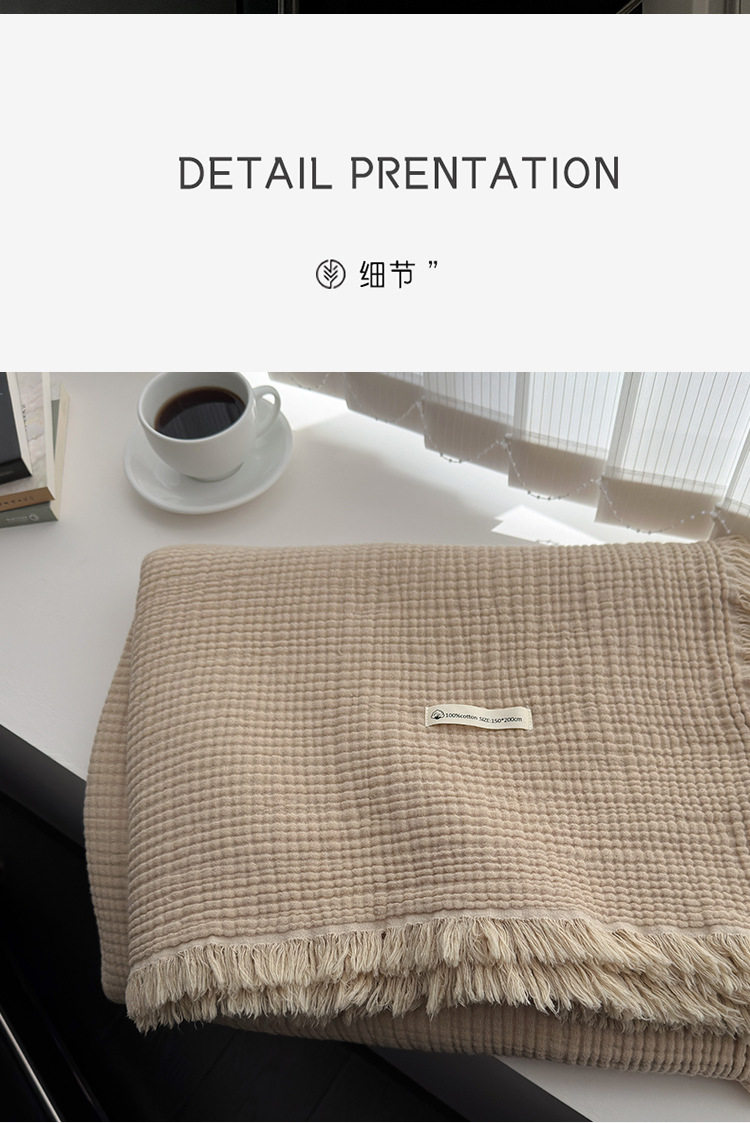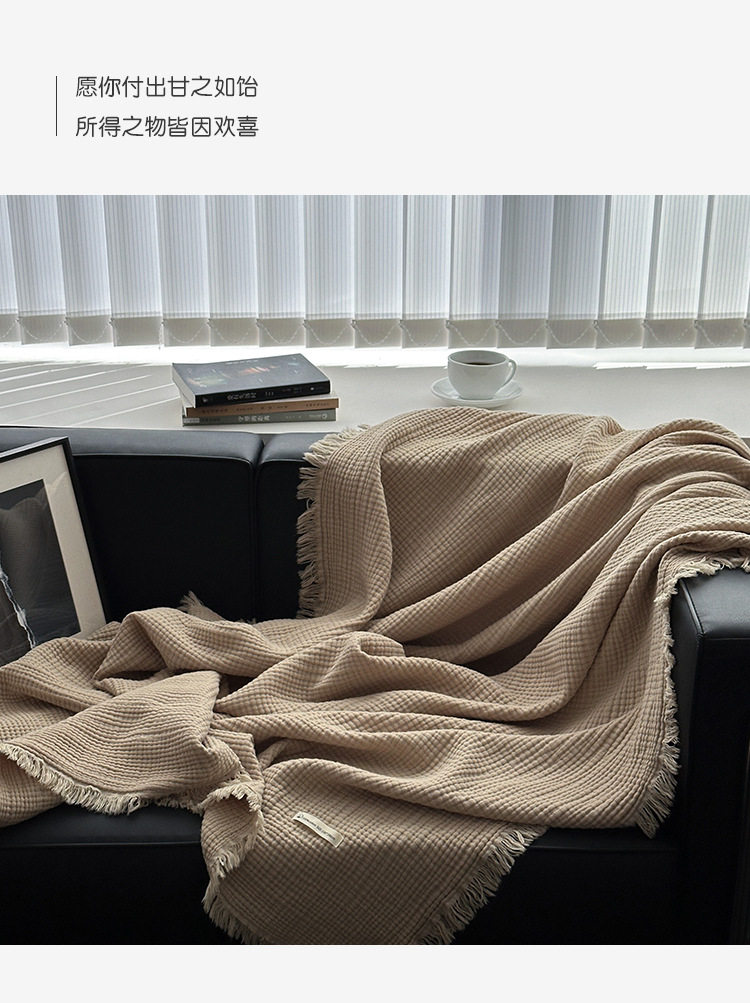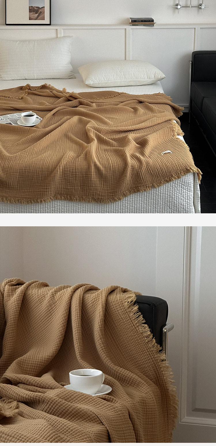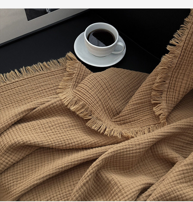 Maillard Color Four-Layer Yarn Pure Cotton Blanket Tassel Blanket Sofa Cover Blanket Office Blanket Nap Blanket