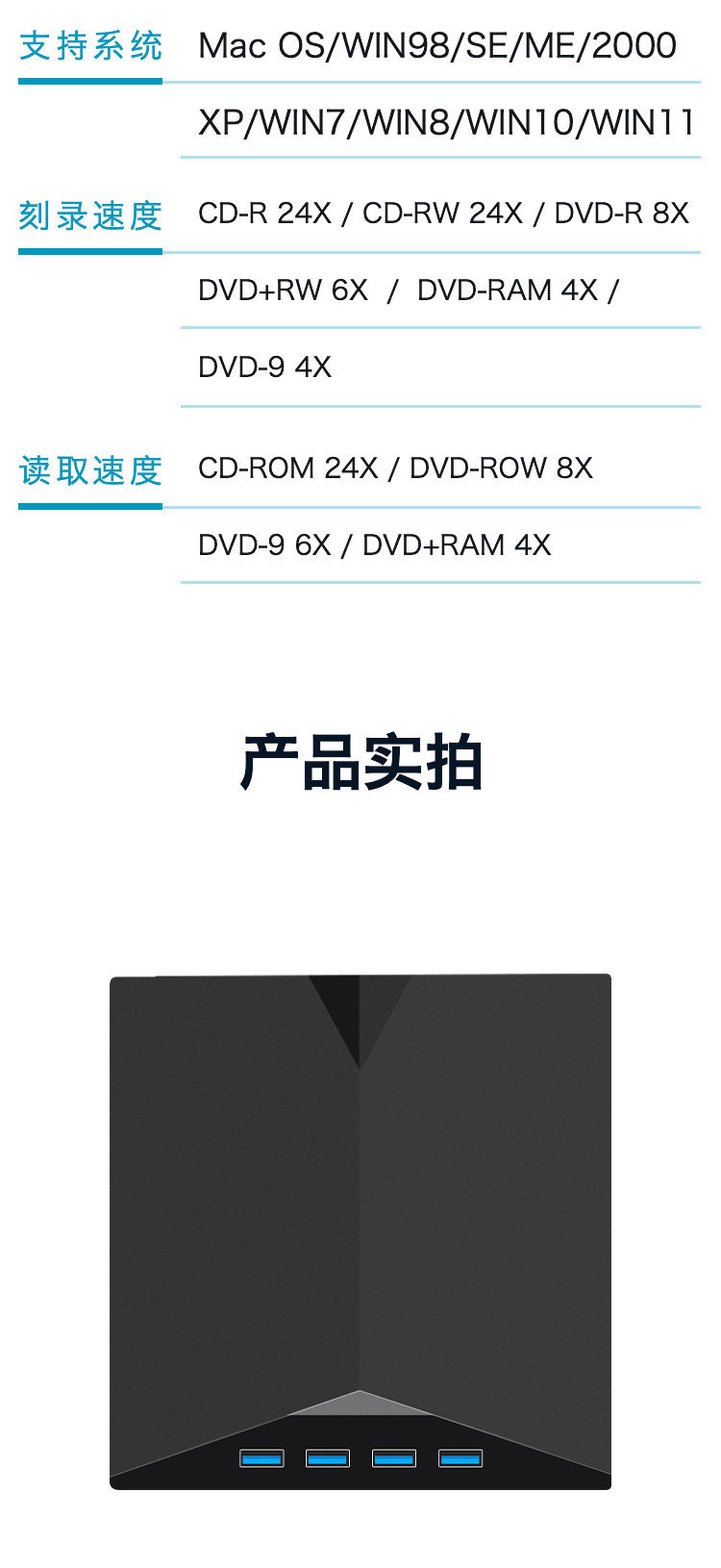 | Read Speed | DVD8X CD VCD24X |