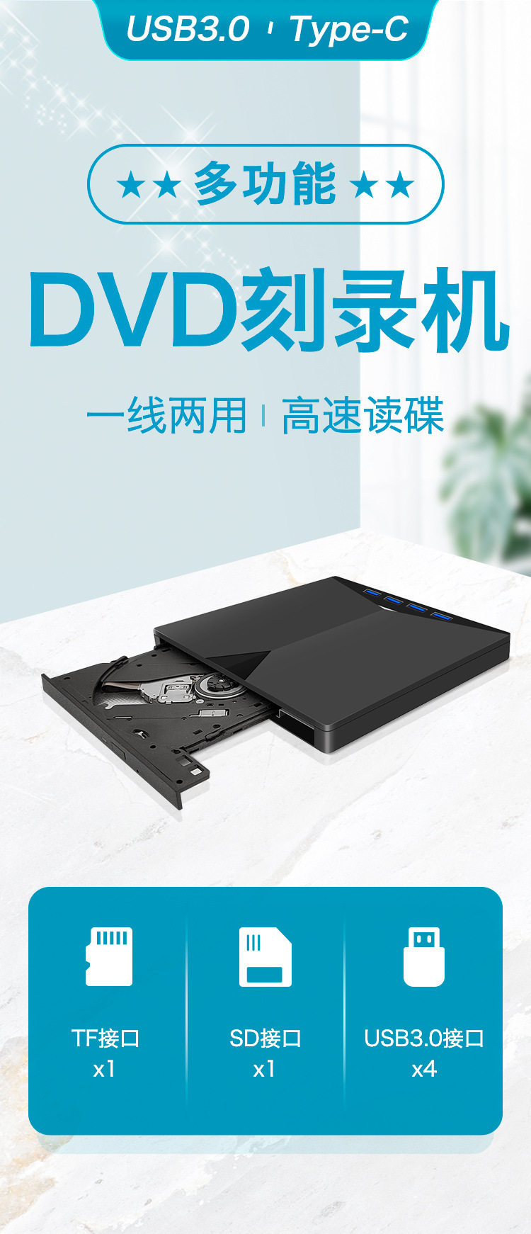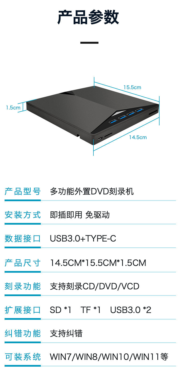Cross-Border Usb3.0 External Optical Drive Seven-In-One Cd/Dvd-Rw Multi-Function Multi-Interface Computer Optical Drive Burner