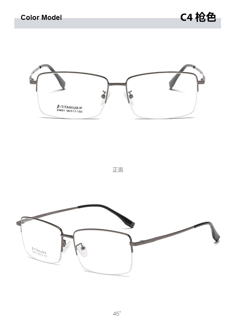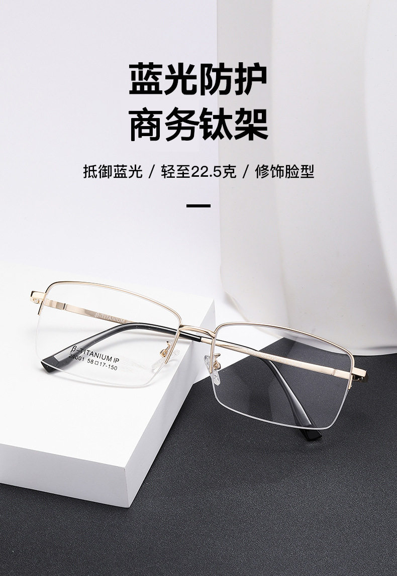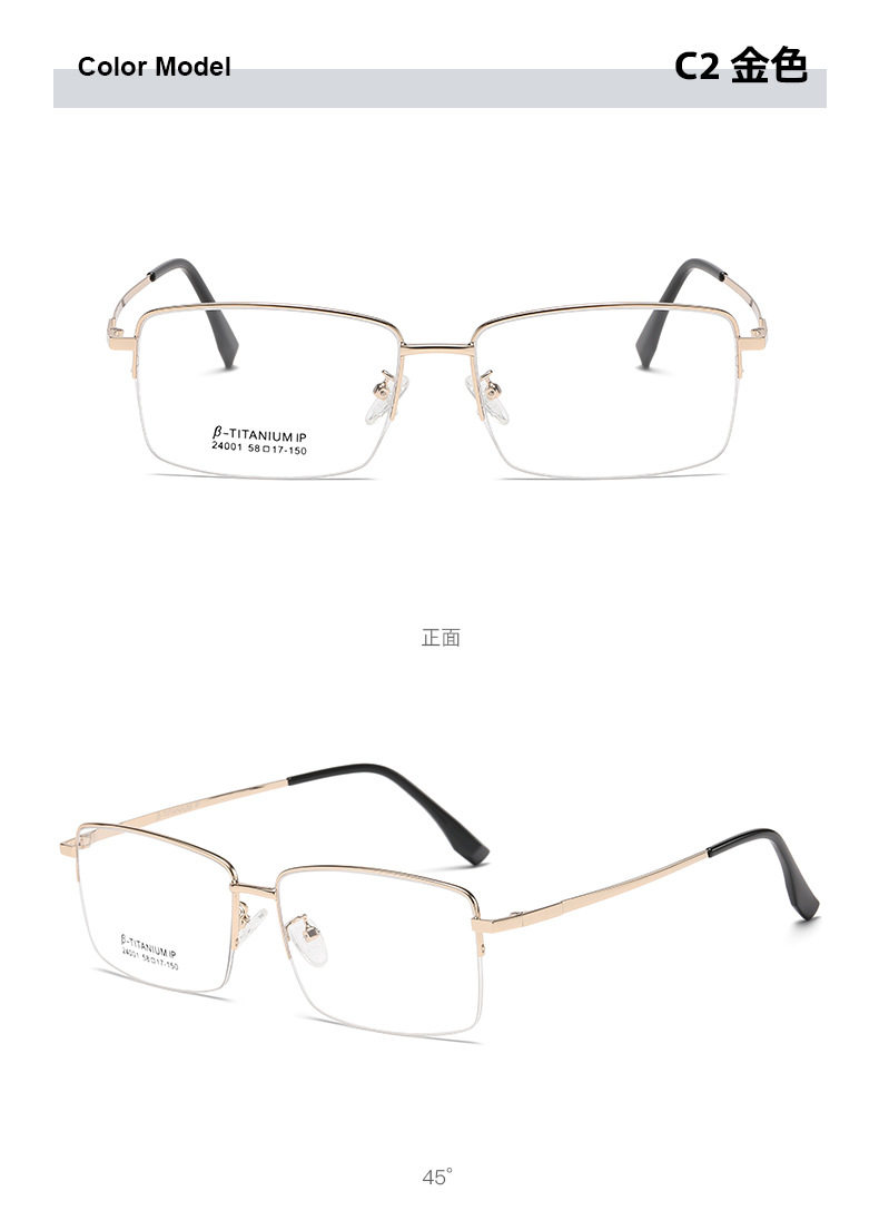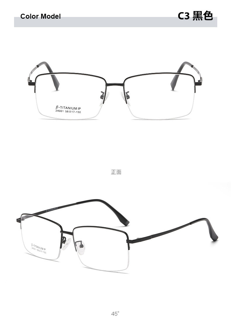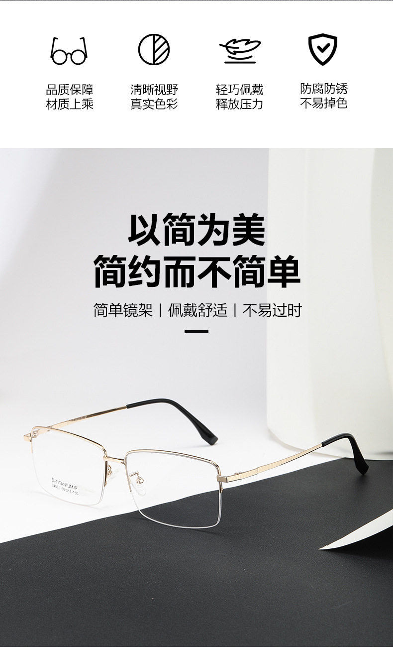[24001]New Men's Elegant Half-Rim Glasses, Half-Titanium Prescription Eyeglass Frames, Business Casual Style, Trendy Men's Frames