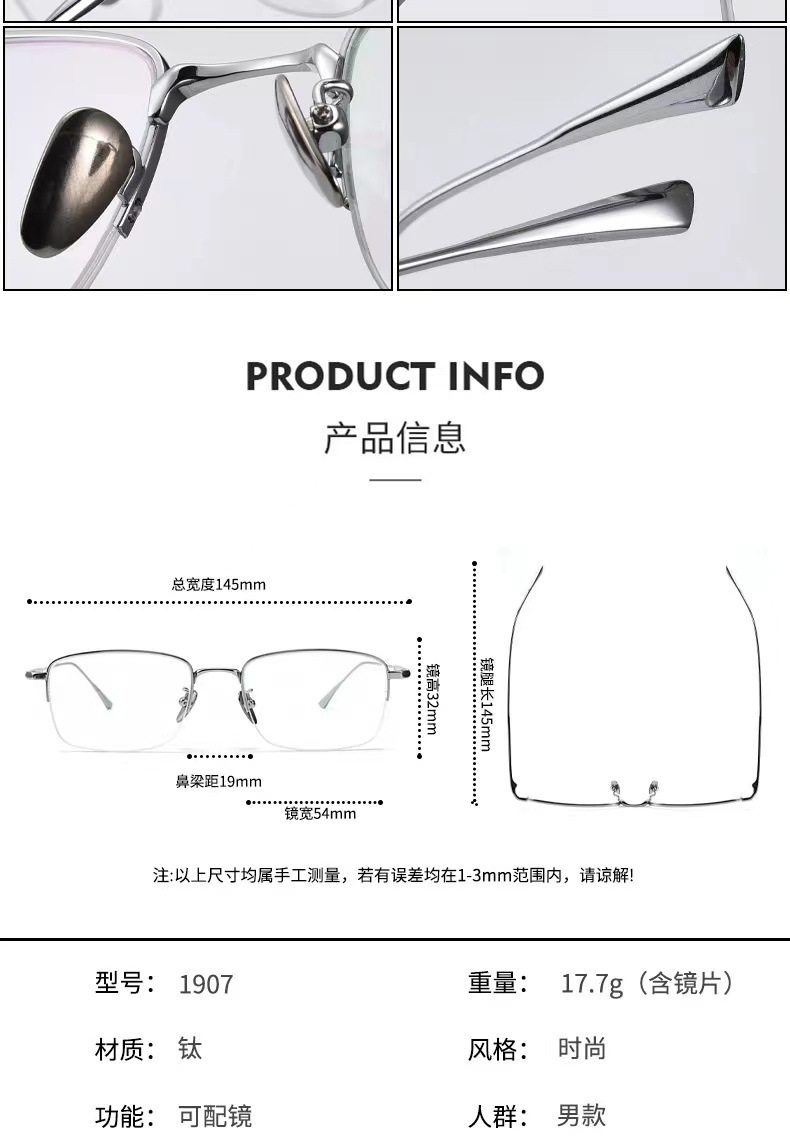 Danyang Glasses Wholesale Ultra-Light Frames Pure Titanium Glasses Frames Myopia Frames Women's Half-Frame Gold Wire Titanium Frames Men 1907
