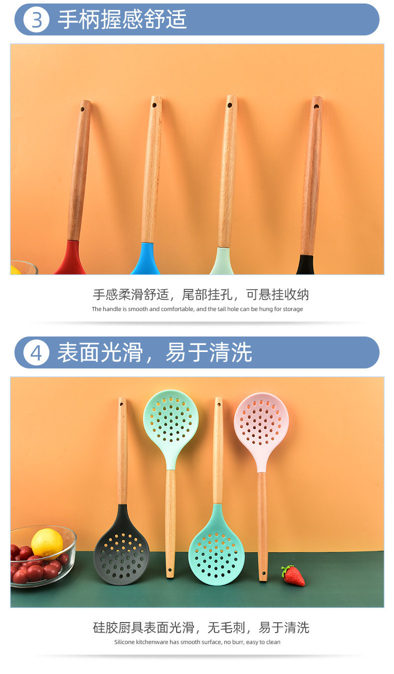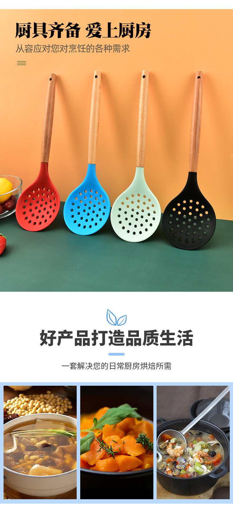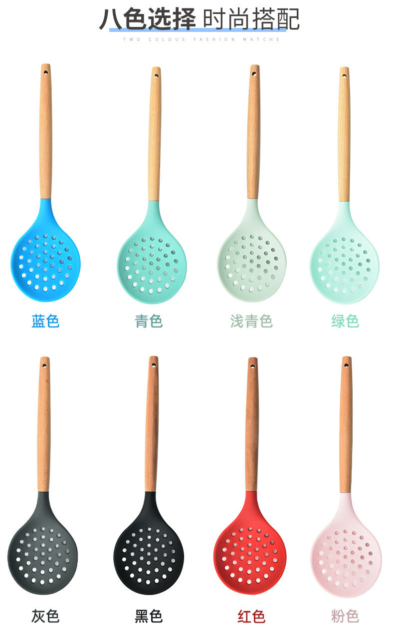 Household kitchen filter colander hot pot spoon lengthened wooden handle Silicone Strainer water filter spoon fried filter screen slag
