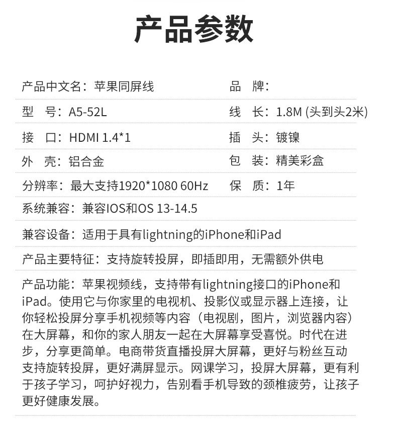 Private model for Apple hdmi mobile phone projector horizontal and vertical screen power-free same screen line