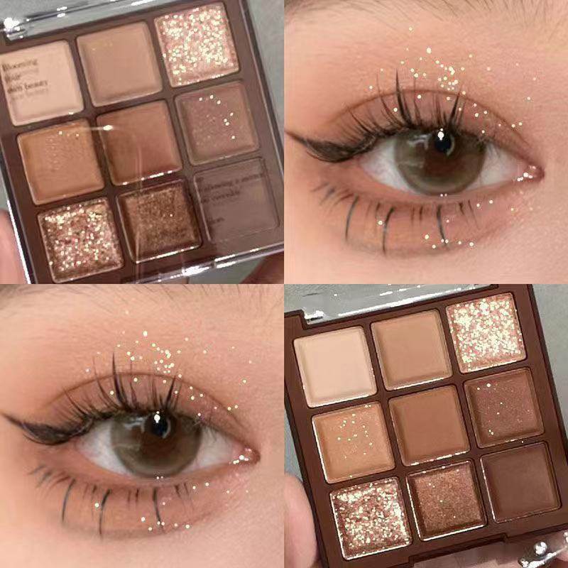 Nine-Color Chocolate Eye Shadow, Pearlescent Matte Earth Color, Not Easy to Remove Makeup, Versatile Beginner Eye Shadow Palette, 9 Colors Chocolate