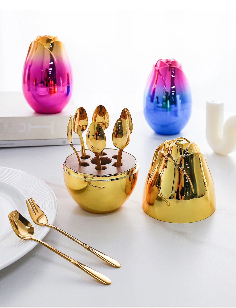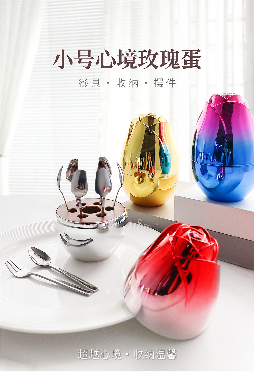 Cross-border creative mini high-looking rose mood egg stainless steel mixing spoon fruit fork tableware storage egg