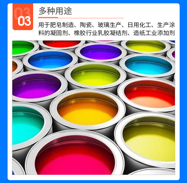 | Purpose | Water treatment, breeding, leather pickling, printing and dyeing industry, highway snow removal, refrigeration and refrigeration, etc. factories |