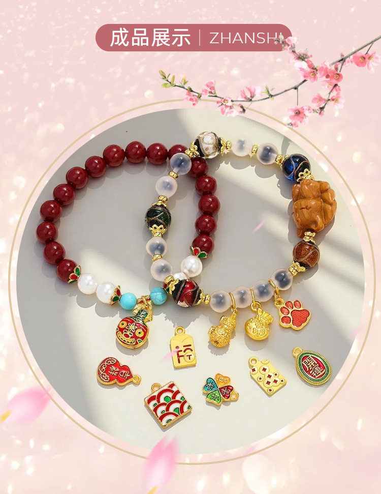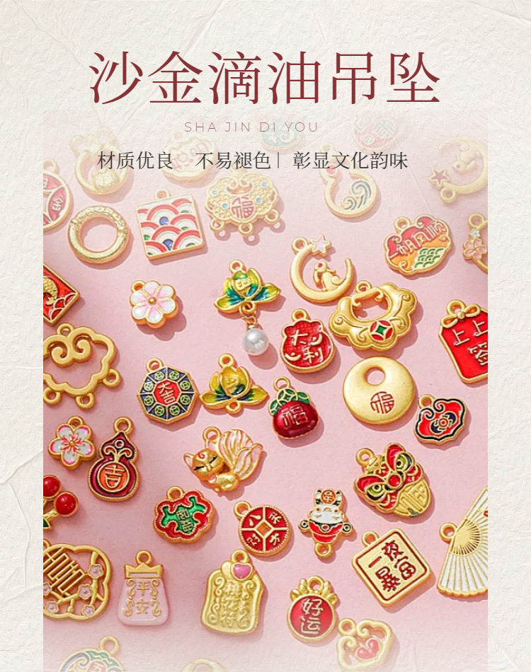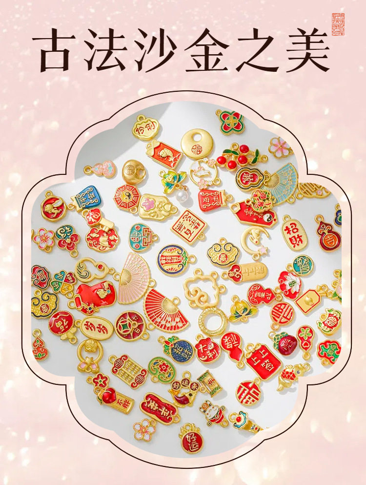 Ancient French Sand Gold Color Preservation National Style Accessories Pendant DIY Blessing New Year Transport Handmade Necklace Bracelet Jewelry Pendant