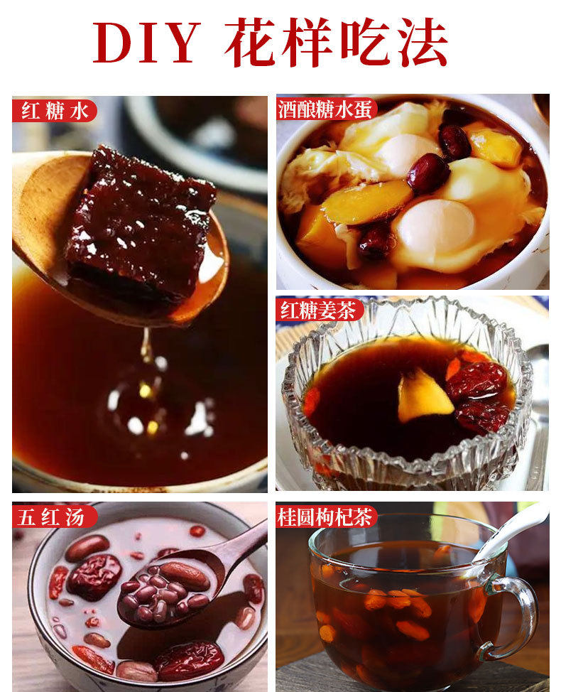 | Packaging specifications | Old brown sugar block 250g (half jin pack) 1 bag,Old brown sugar block 500g (1 Jin pack) 2 bags |