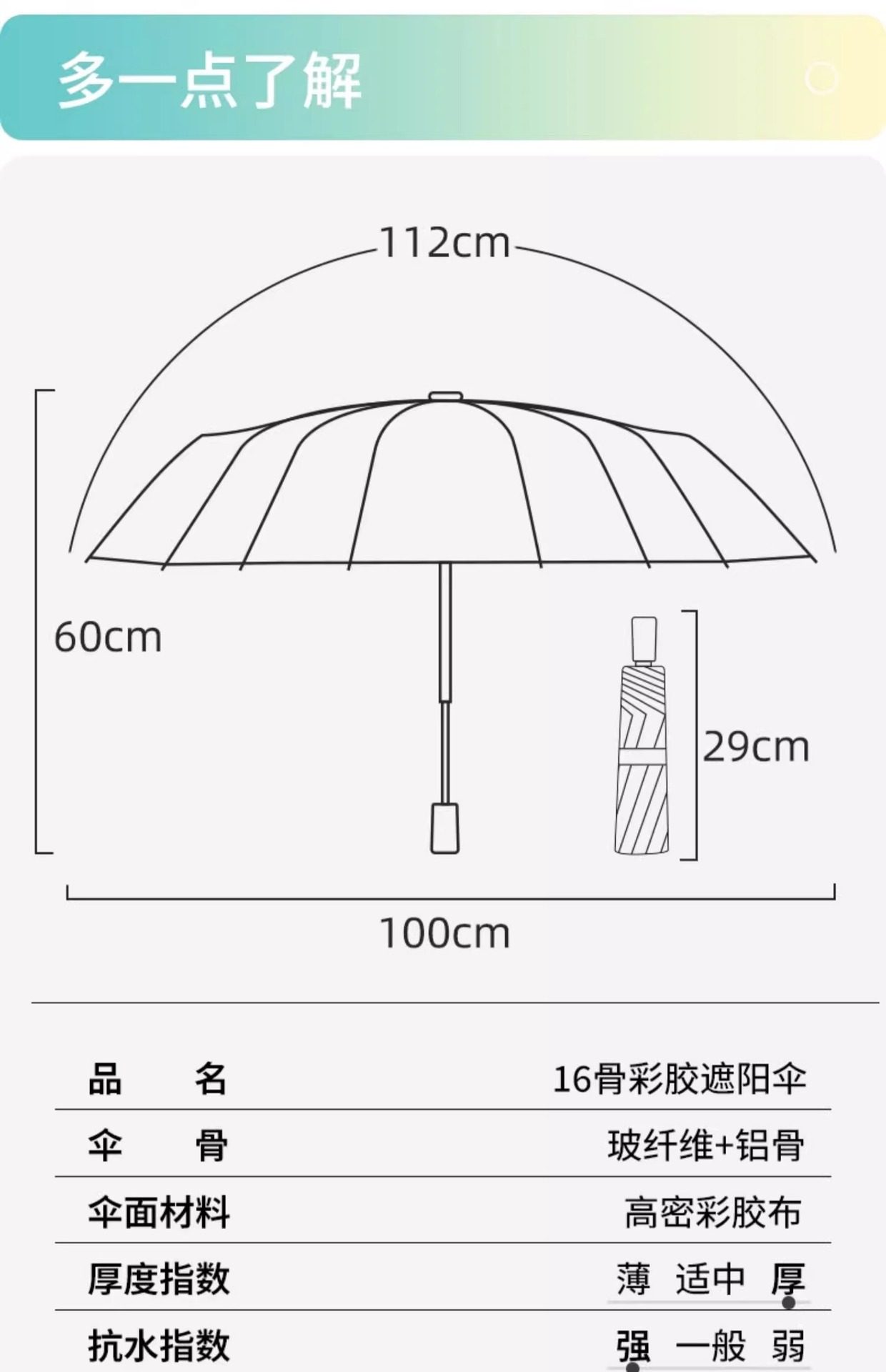 | Umbrella cloth density | 210T |