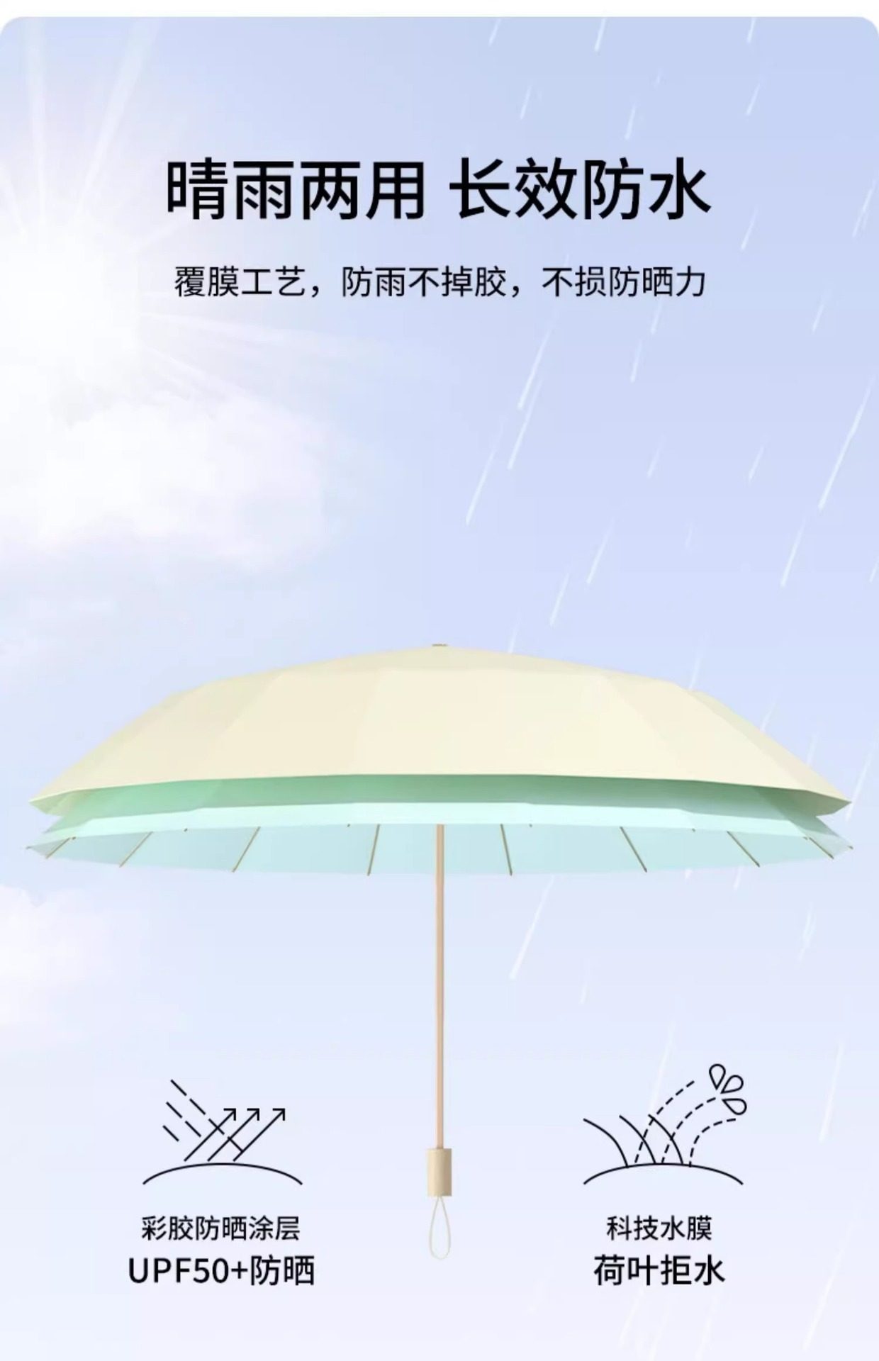| Women's umbrella for both rain and shine | Umbrella thickened and enlarged |